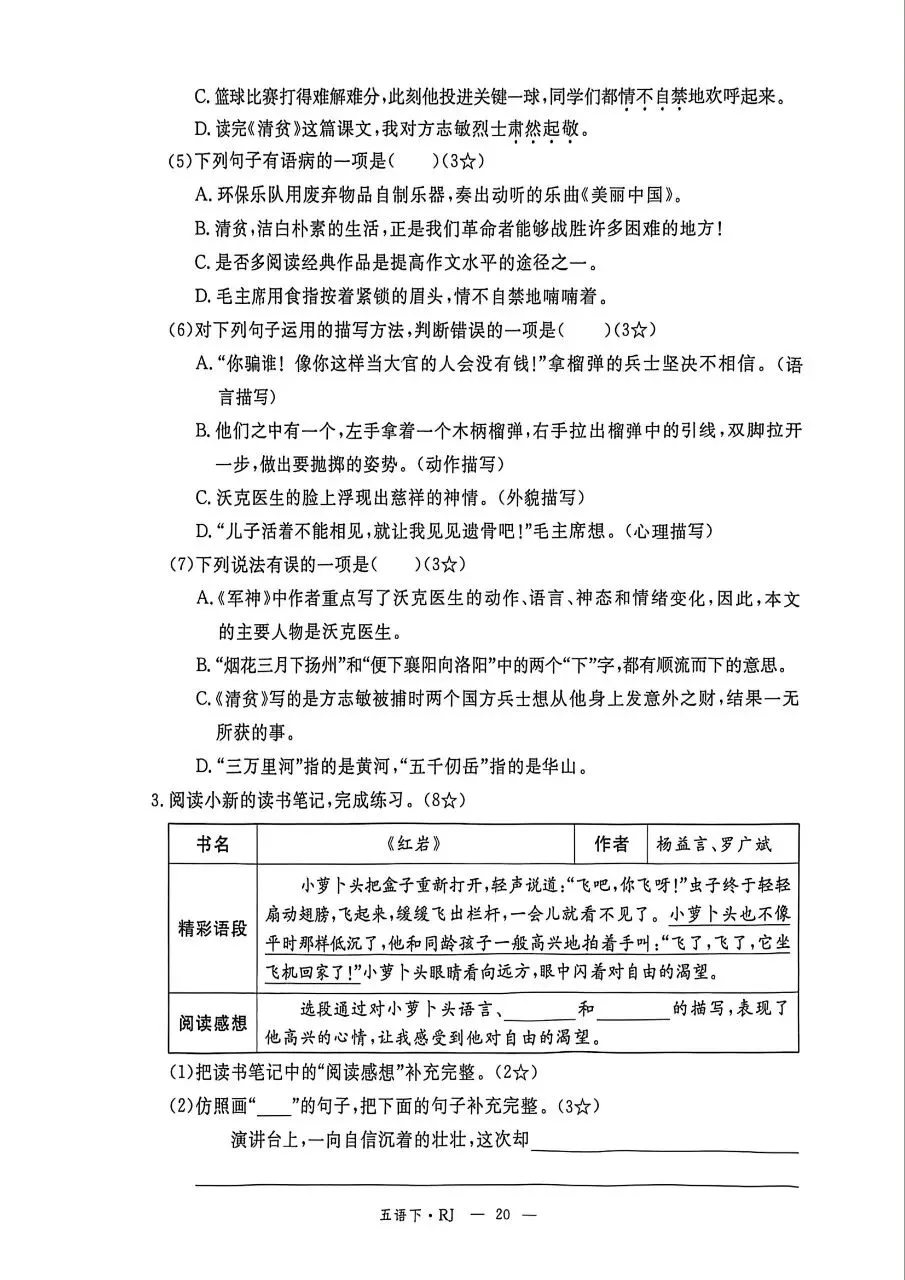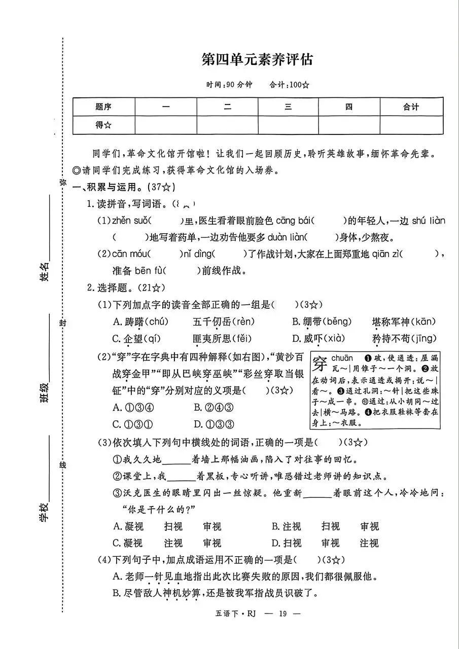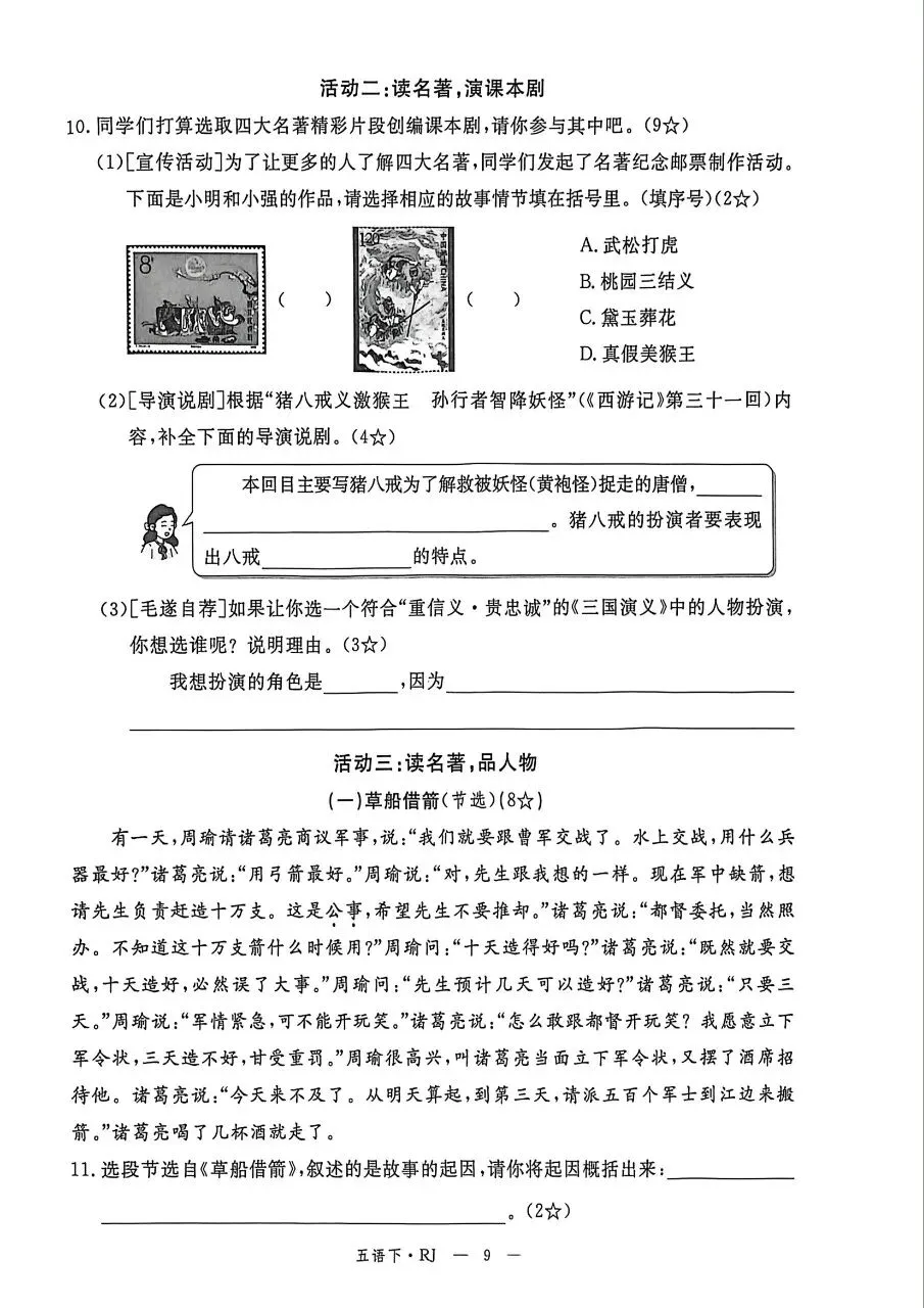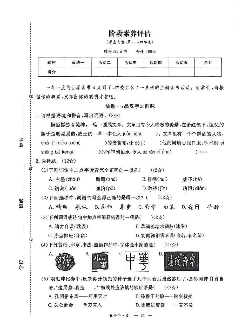 2026春新版五年级下册语文人教部编版《1-8单元测试卷+期中期末综合素养评估卷》(共10套,含答案),完整可打印