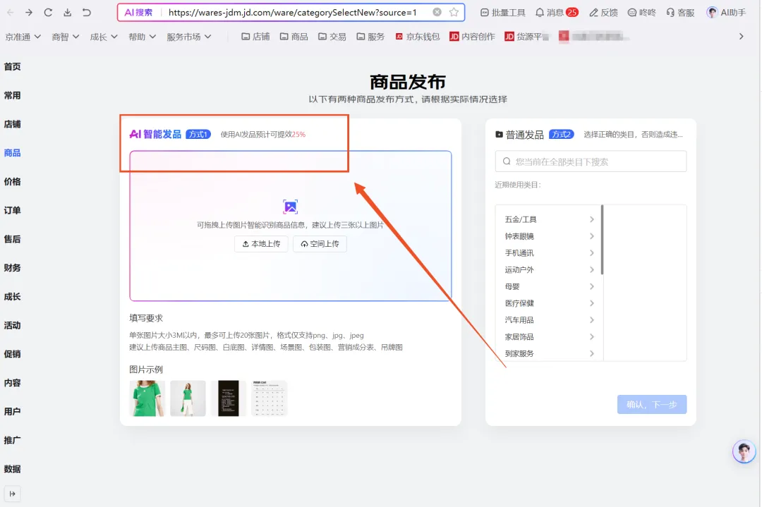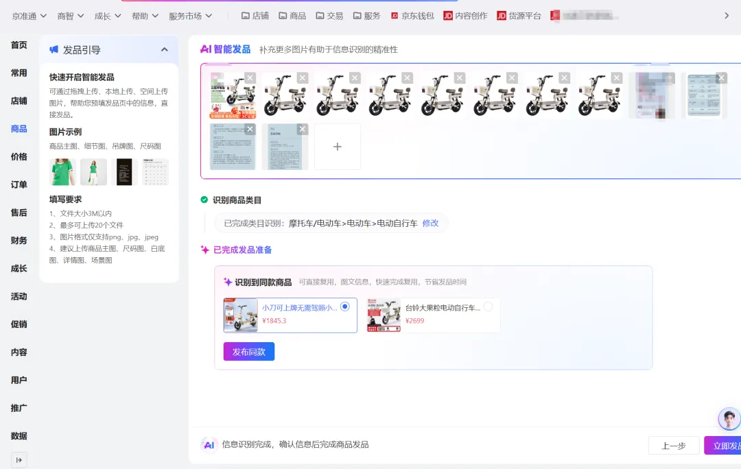 1、功能:智能发品通过识别商品图片,快速划分商品所属类目,一键生成商品标题及商详页,高效助力商家运营