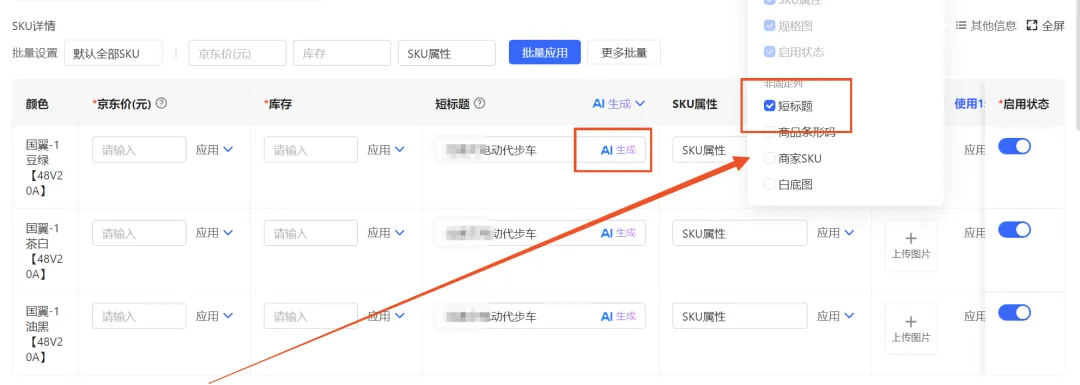 短标题——商品—商品发布—SKU详情右上角—短标题