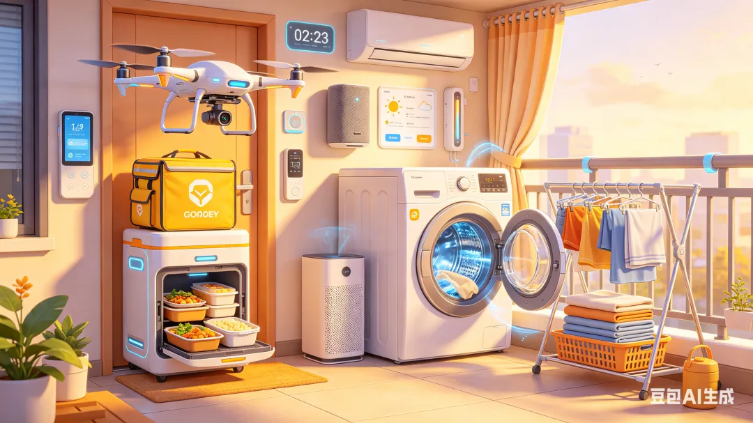 就比如这外卖送货上门,打开手机,躺在沙发上划拉两下就能吃上凉皮肉夹馍,全自动洗衣机更是解放人们的双手,只需要按个“总开关”,从加水(液)、轮转、洗涤、甩干一条龙……