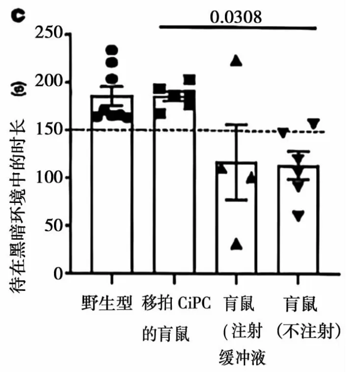 C.把CiPCs植入盲鼠眼睛后检验这些小鼠的对光反应,结果如上图所示,移植后的小鼠更喜欢光照强的环境