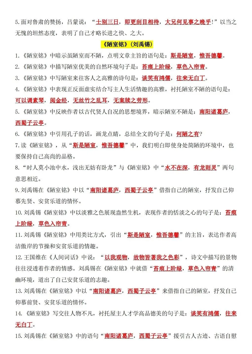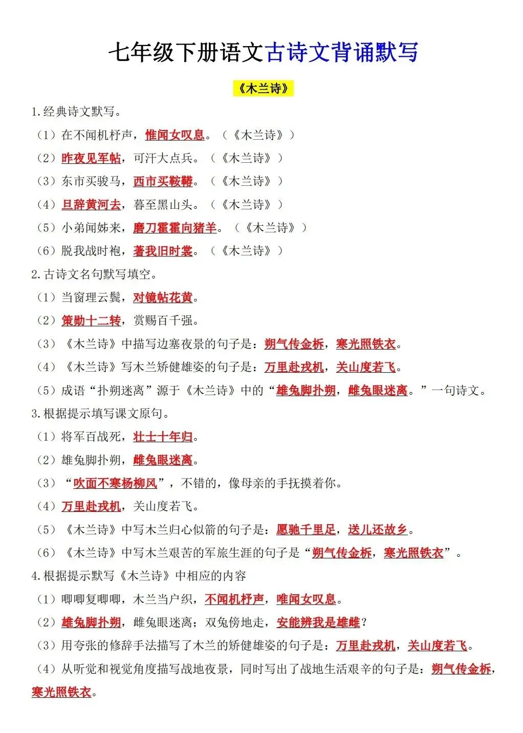 2026版七年级下册语文古诗文背诵默写知识清单,可打印电子版!