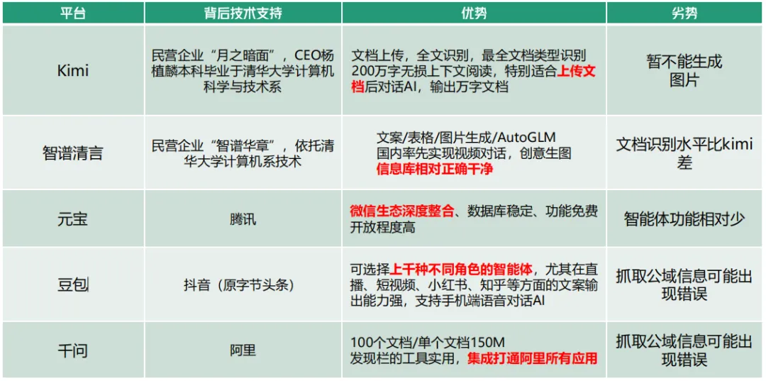 ✅ 豆包:内容创作好,智能体,语音对话很方便—但是有时候会一本正经的胡说八道,需要辨别