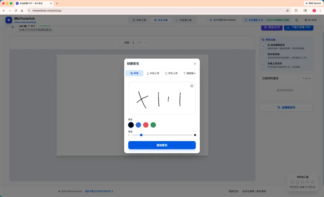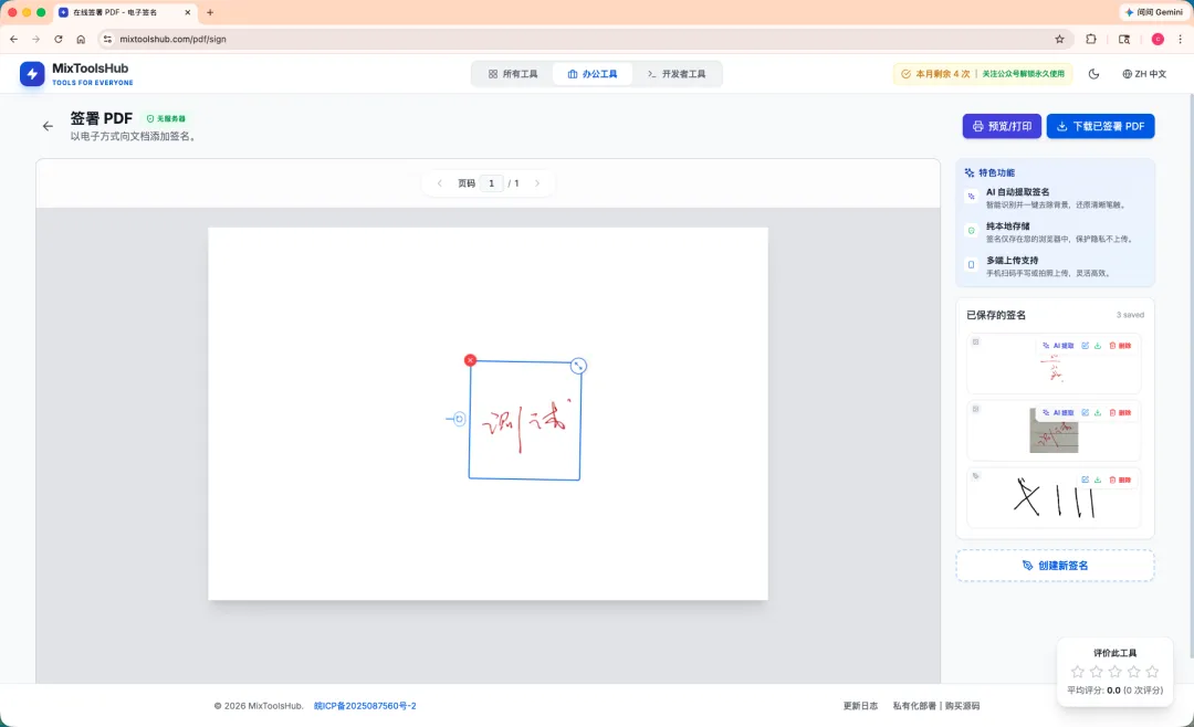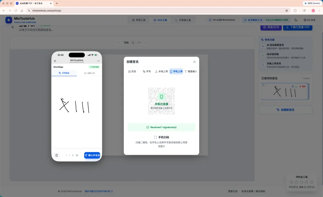 PDF 电子签名,免费!不上传!手机扫码签!AI 提取签名!浏览器直接搞定!
