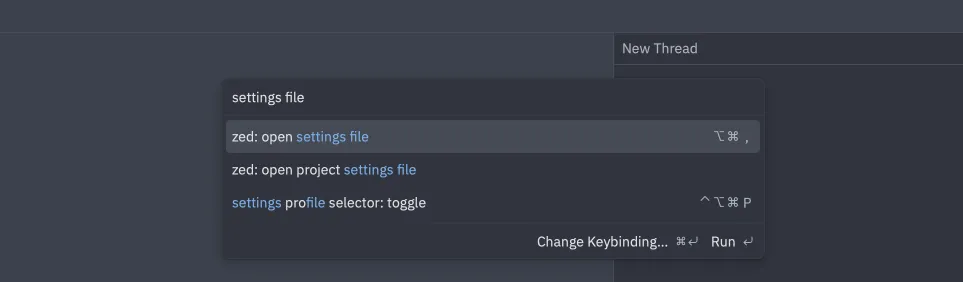 按 Shift+Command+P 打开命令面板,输入 settings,即可直接打开 settings.json 配置文件。