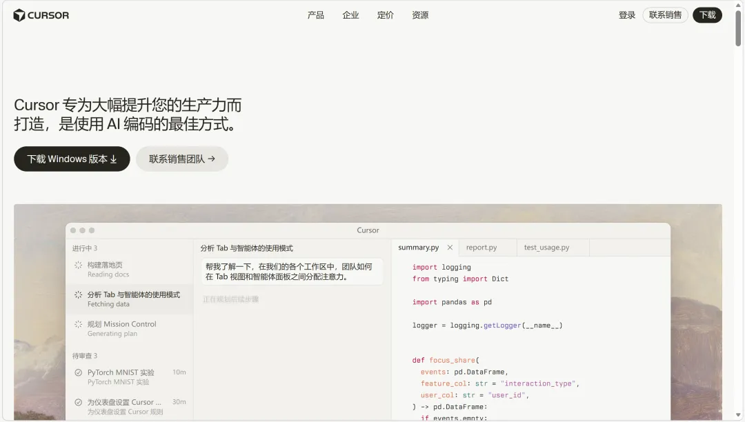 官网: https://cursor.com/ (也有人用 https://www.trycursor.com/)