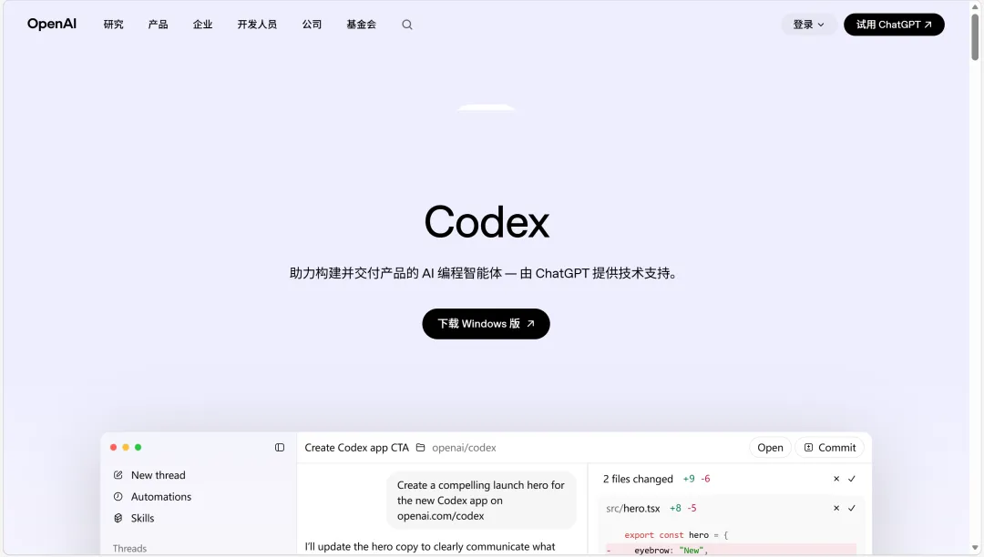 官网(产品页):https://openai.com/codex/ -
