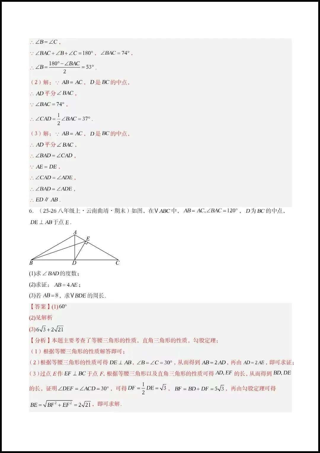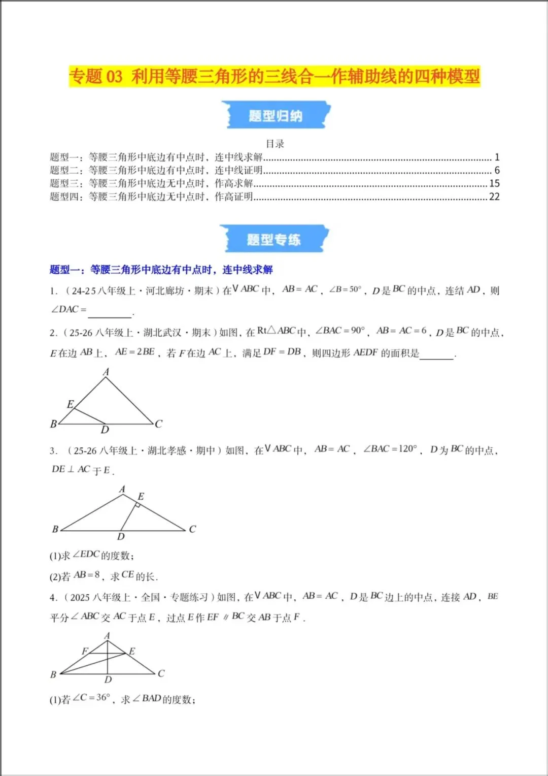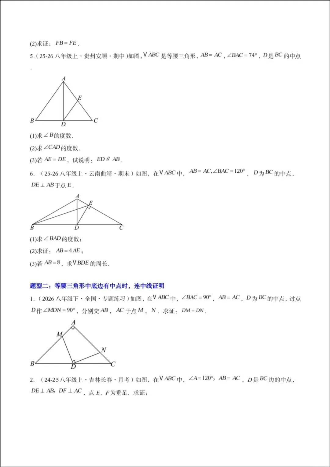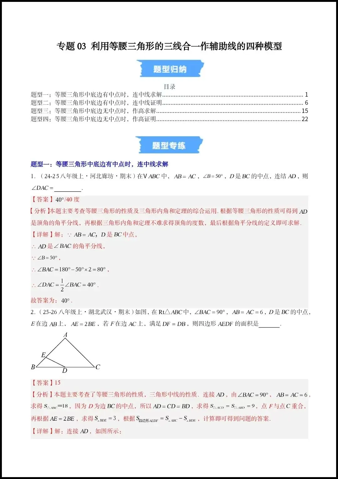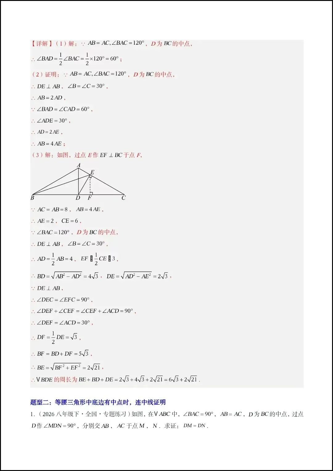 2026春新版教材【北师版】八下〈数学〉专题练习《利用等腰三角形的三线合一做辅助线的四种模型》几何压轴综合题,可下载打印!
