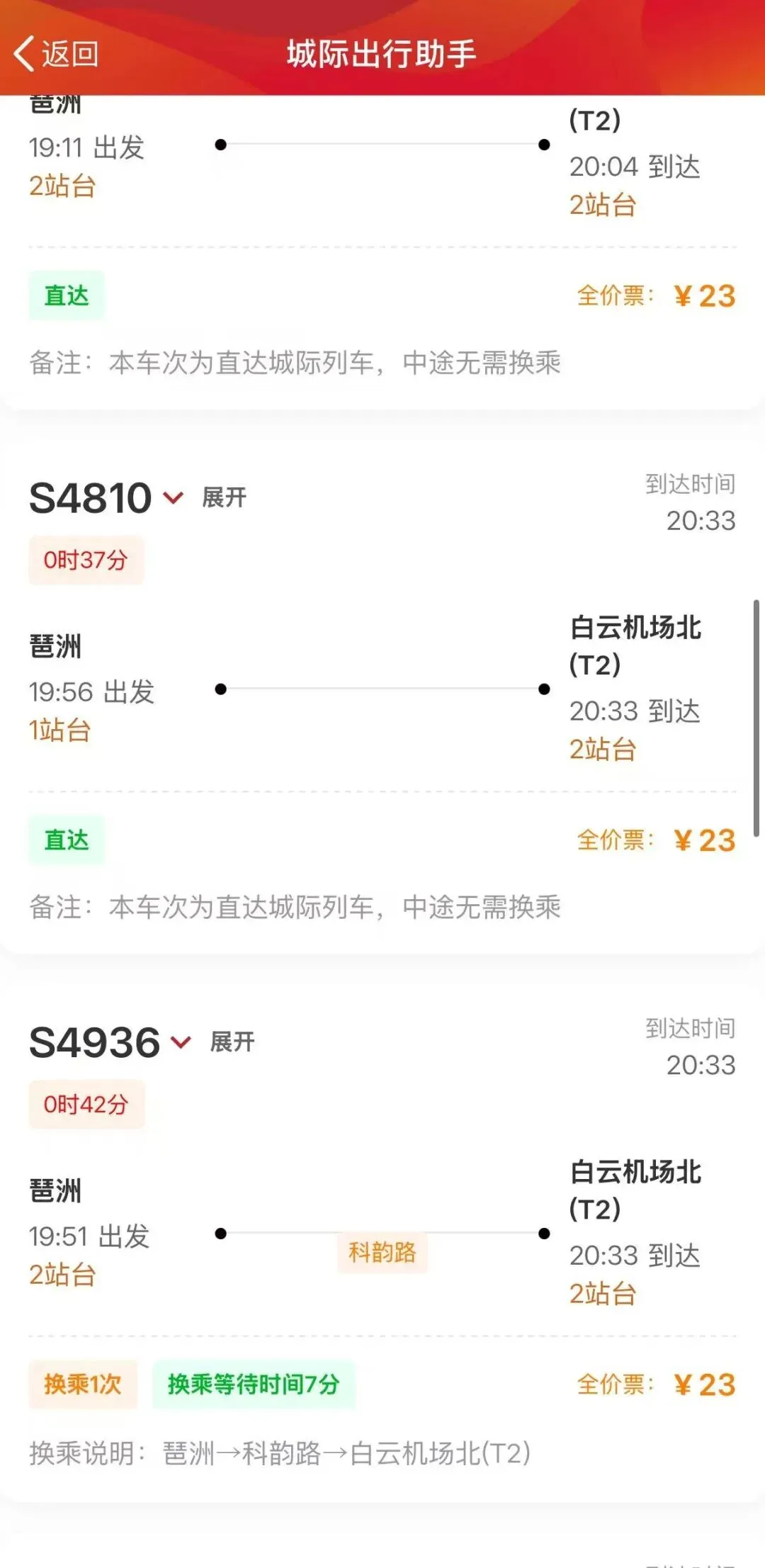 此外,广州地铁APP、广东城际官方微信公众号的“城际出行助手”新增“站台显示”功能,旅客可直观获取站台信息,轻松分辨“同站台换乘”或“跨站台换乘”,并提供了更多样的“快普车”接续方案,进一步方便旅客规划出行、便捷换乘。