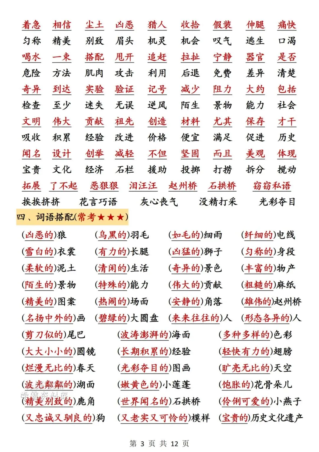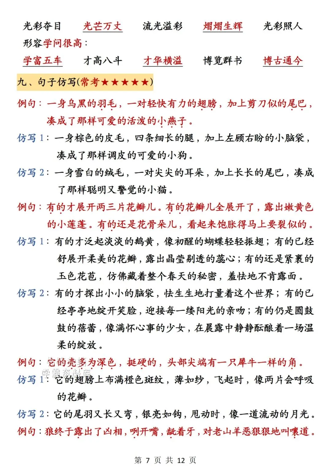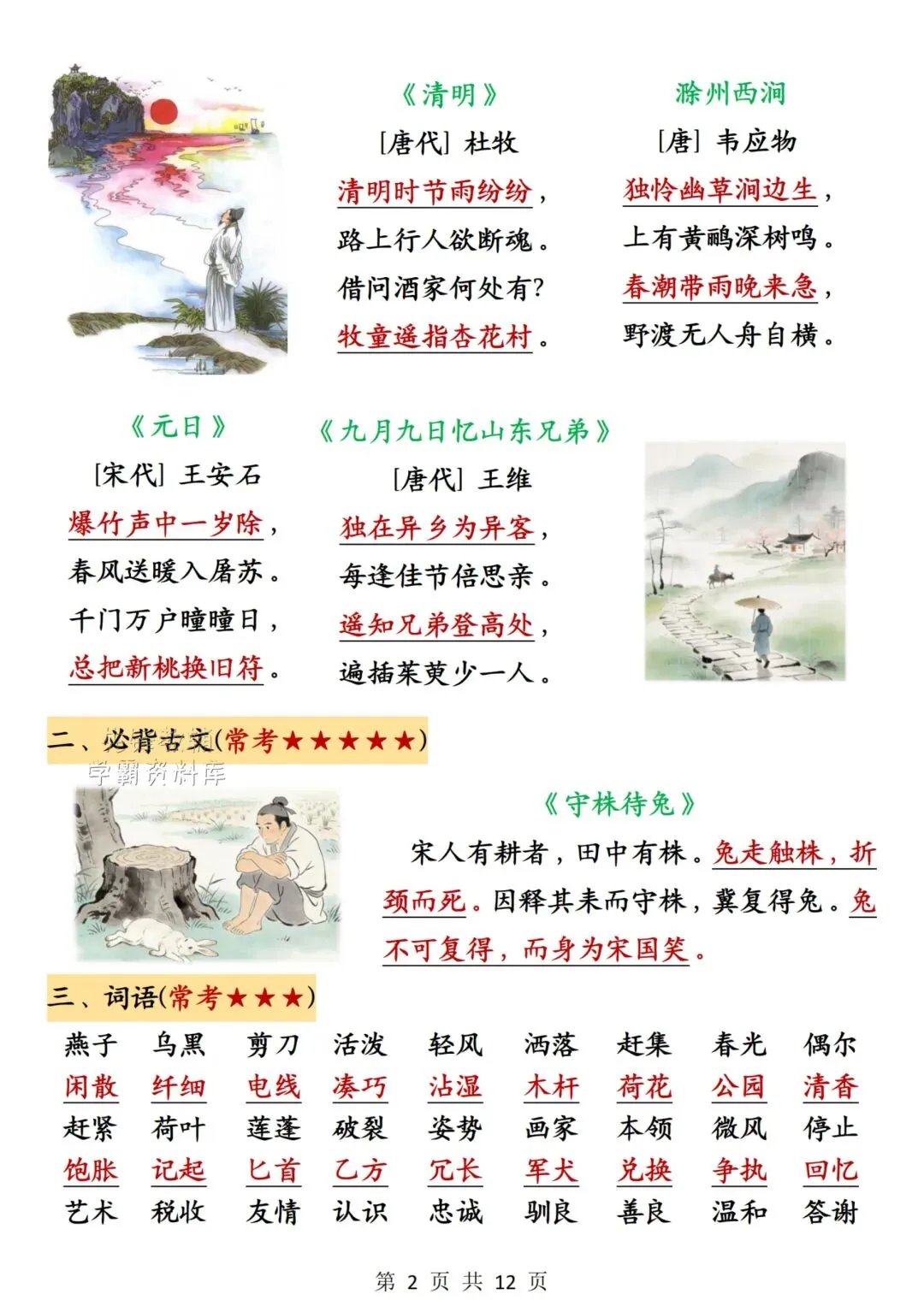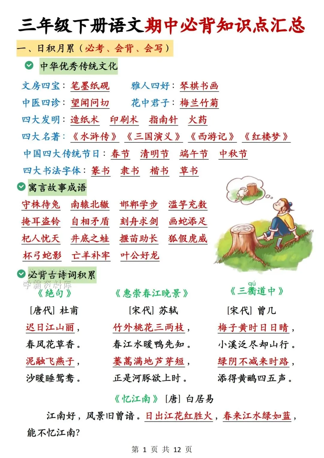 三下语文期中必背知识点汇总,完整电子版可打印,领取方式见文末!