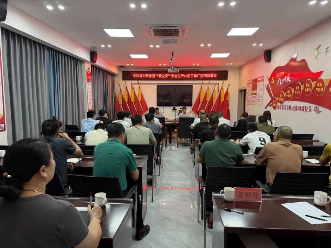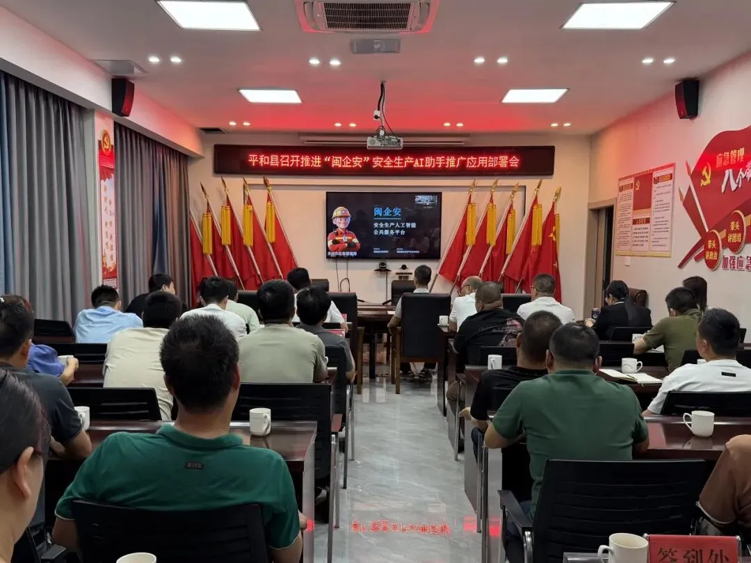 为深入贯彻《福建省人民政府安全生产委员会办公室关于进一步推广应用“闽企安”安全生产AI助手的通知》精神,全面落实省、市关于推广应用“闽企安”安全生产AI助手(以下简称“闽企安”)的工作要求,加快数字化赋能企业安全管理,4月15日,在收听收看市应急局召开的“闽企安”安全生产AI助手推广应用视频会后,平和县随即召开工作部署会议,专题推进“闽企安”推广应用工作。县应急局、中国电信平和分公司专班成员及全县安全生产企业负责人参加会议。