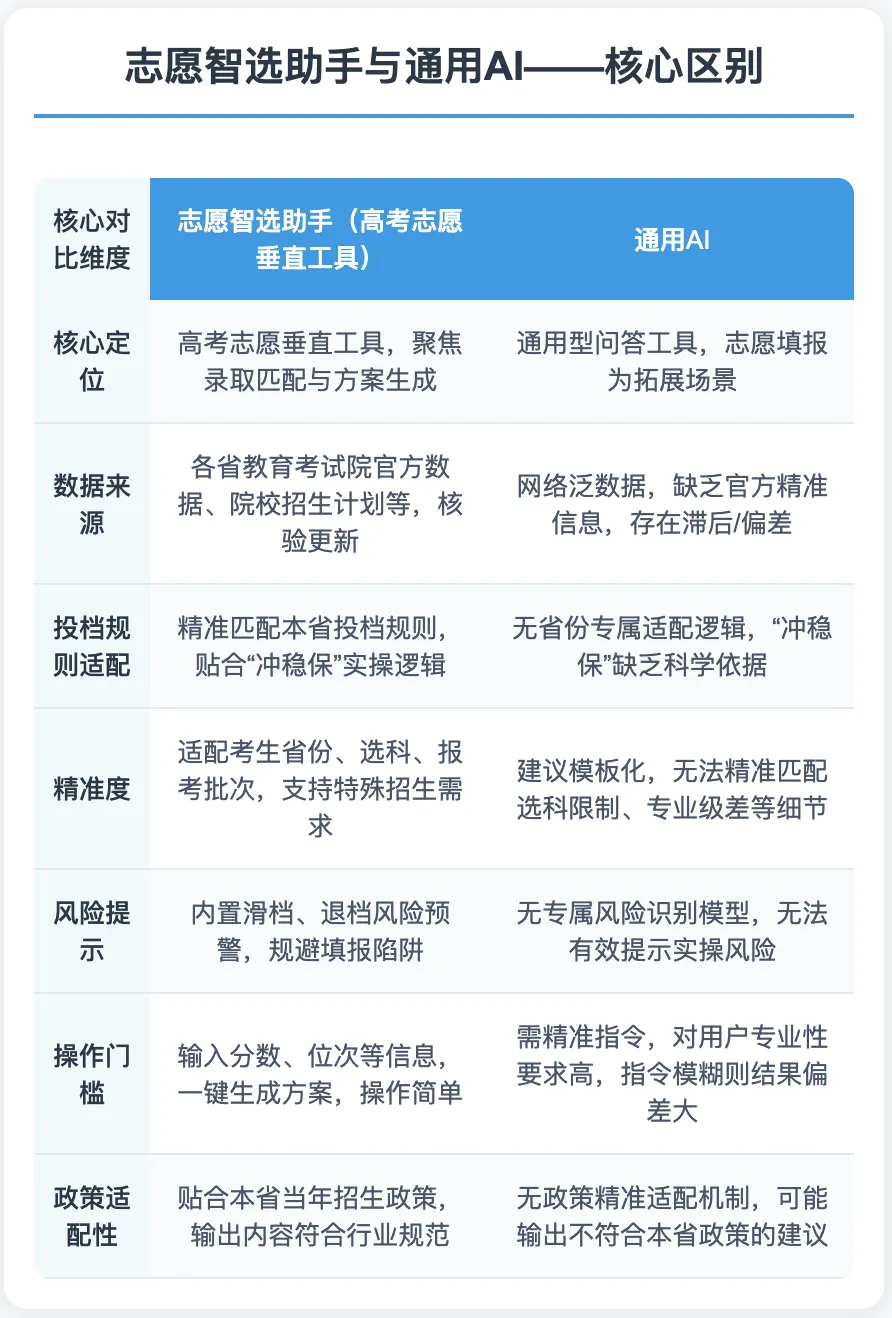 志愿填报别踩坑!选大数据智选助手,还是通用 AI?