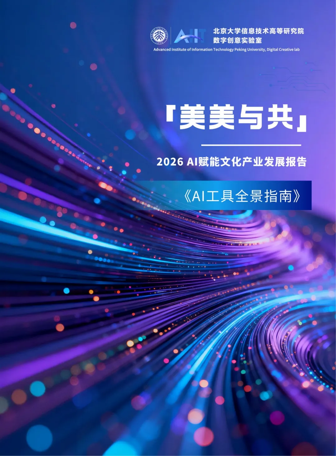 《AI 工具全景指南》由北京大学文化产业研究院与北京大学信息技术高等研究院联合发起,是一份聚焦2026年人工智能与文化创意产业深度融合的系统性实践研究成果。