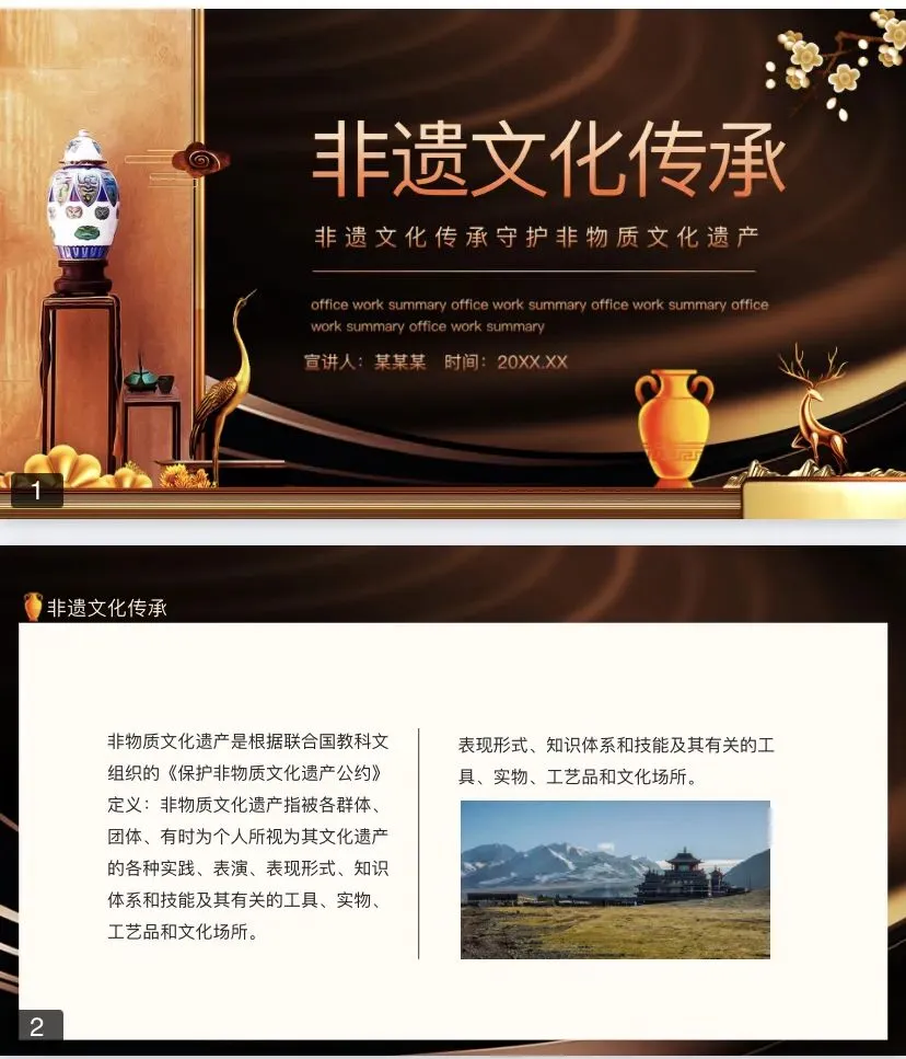 本文内容分享【109款非遗文化传承主题PPT模板】