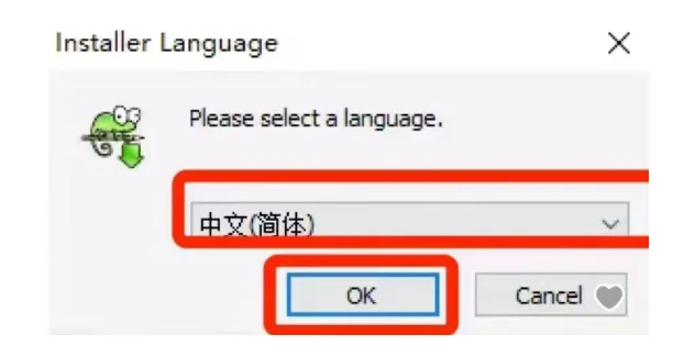 2、选择【中文(简体)】点击【ok】