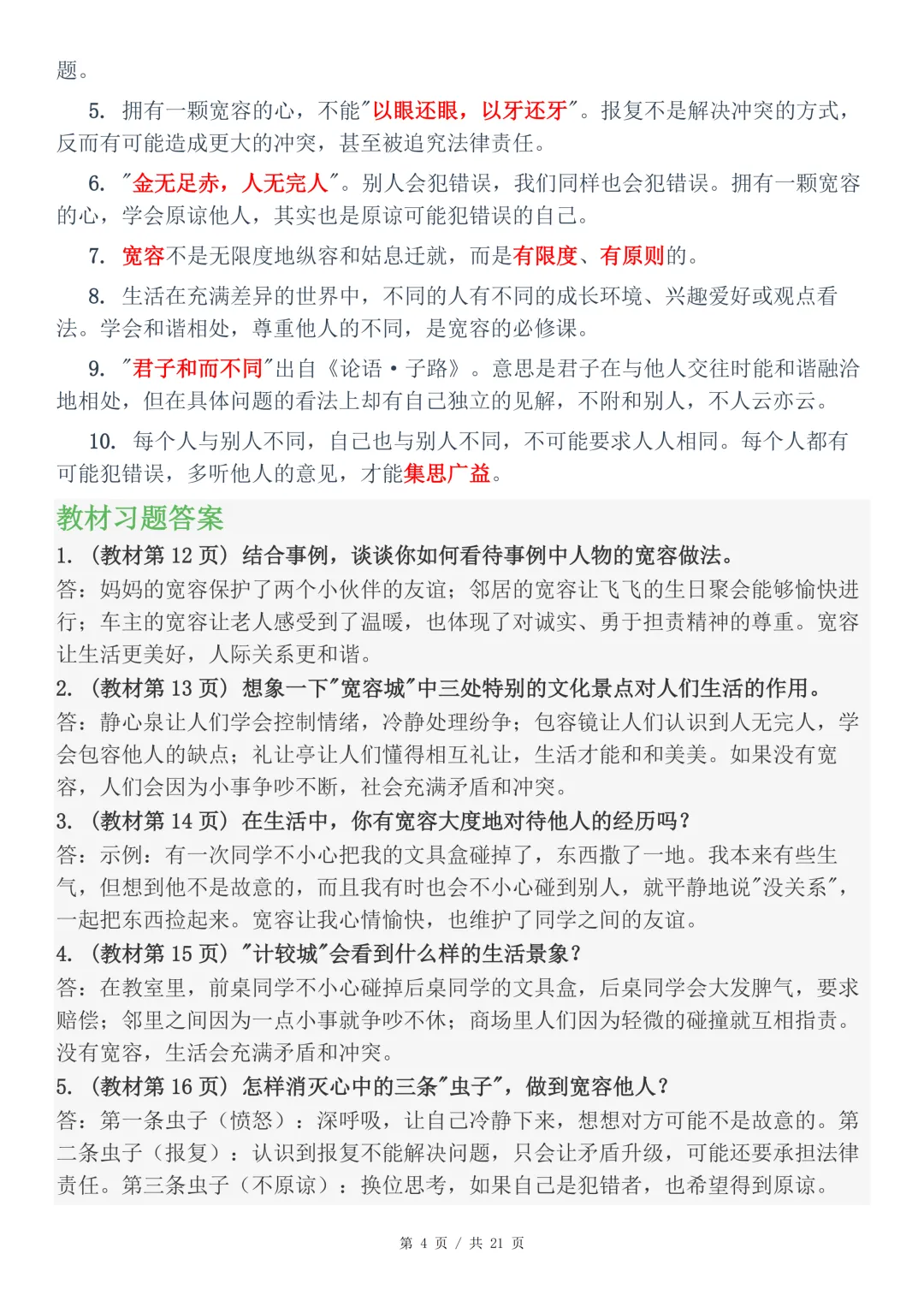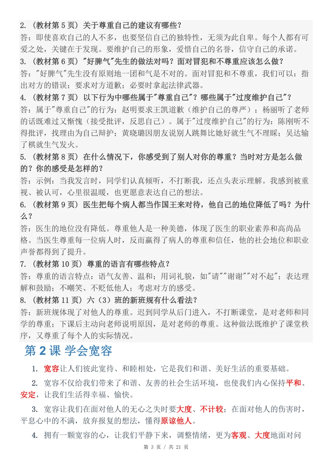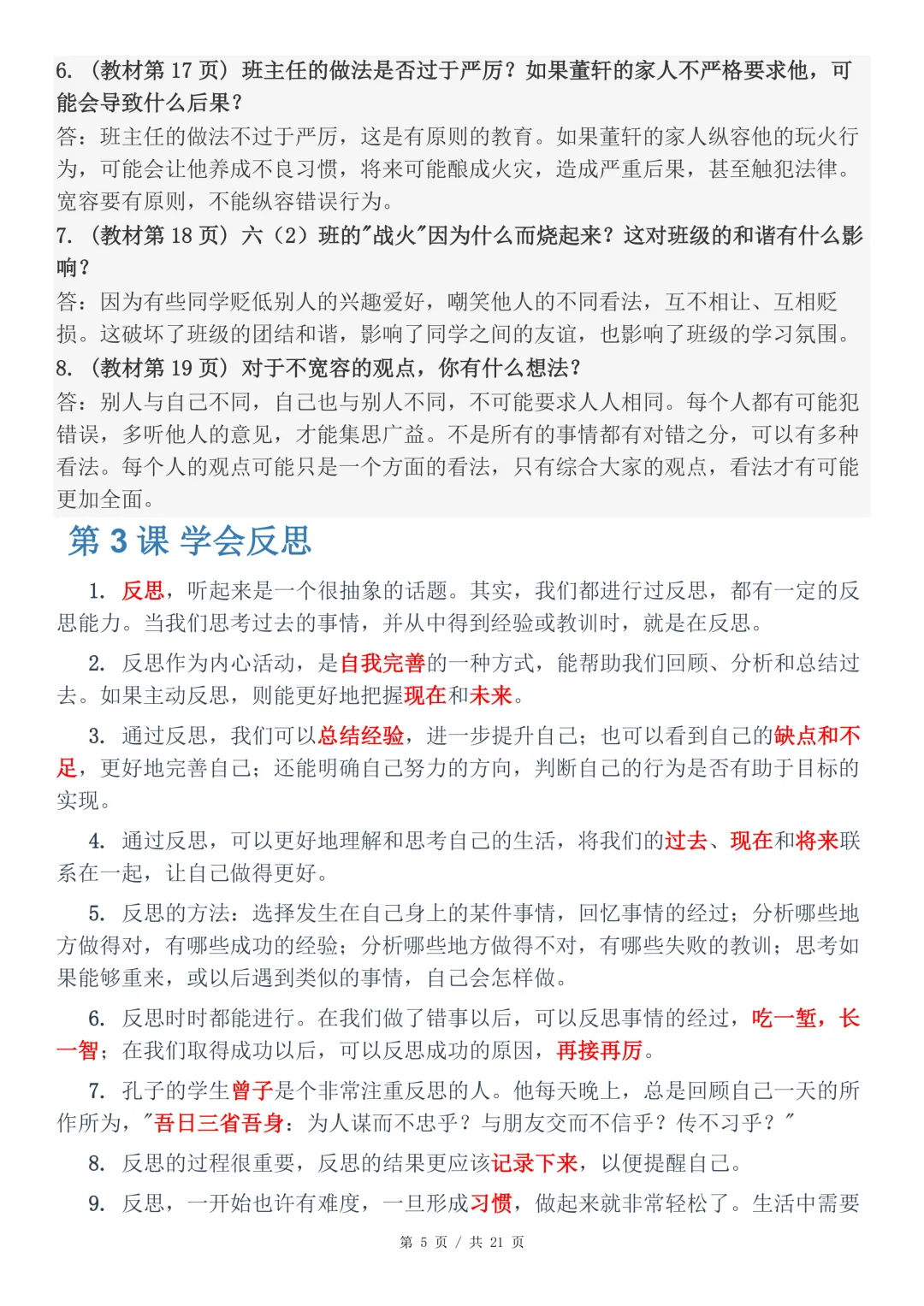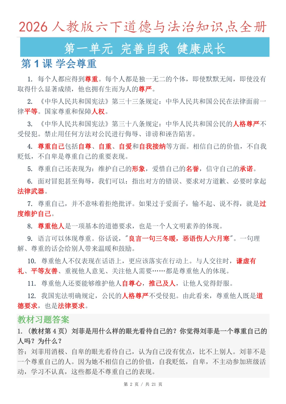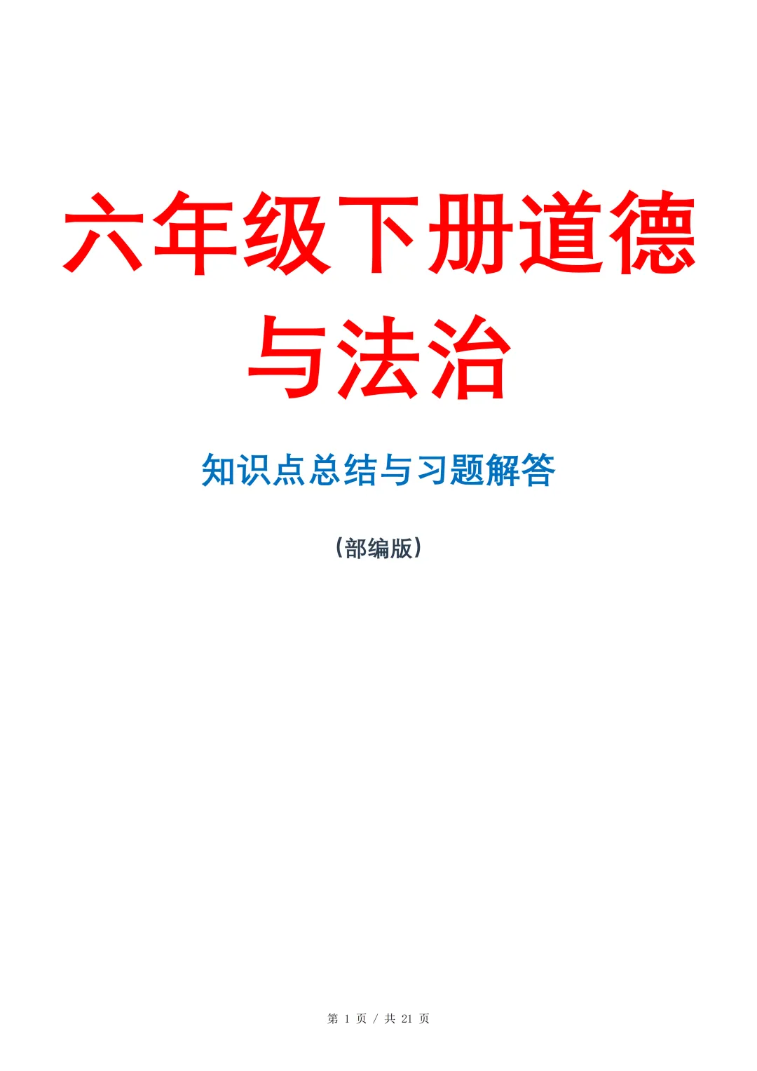 六年级道德与法治下册知识点汇总-21页电子版可下载打印