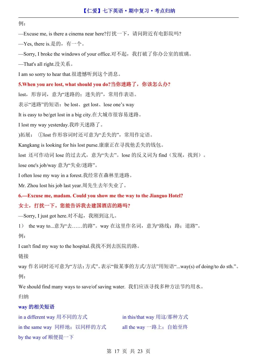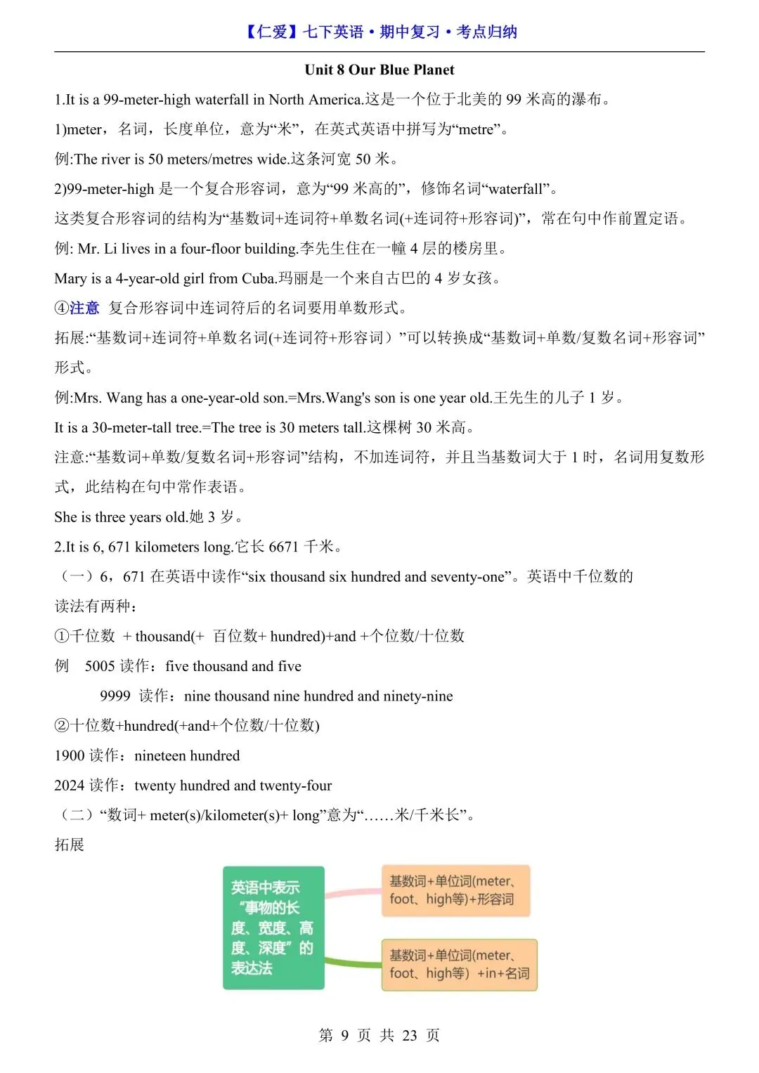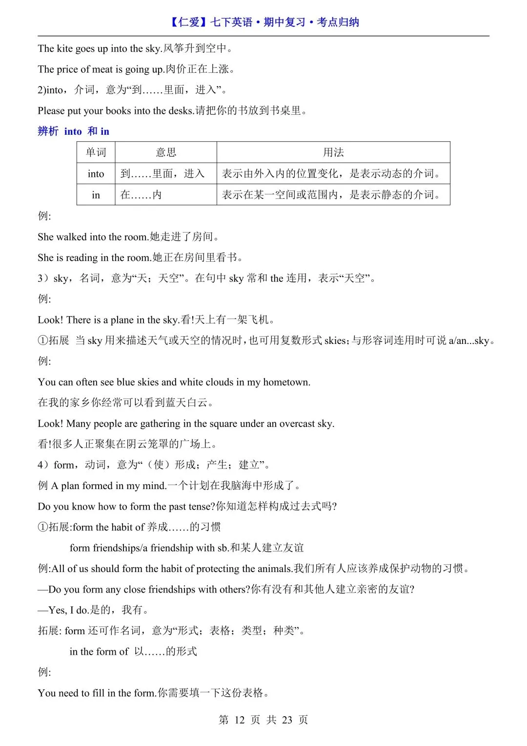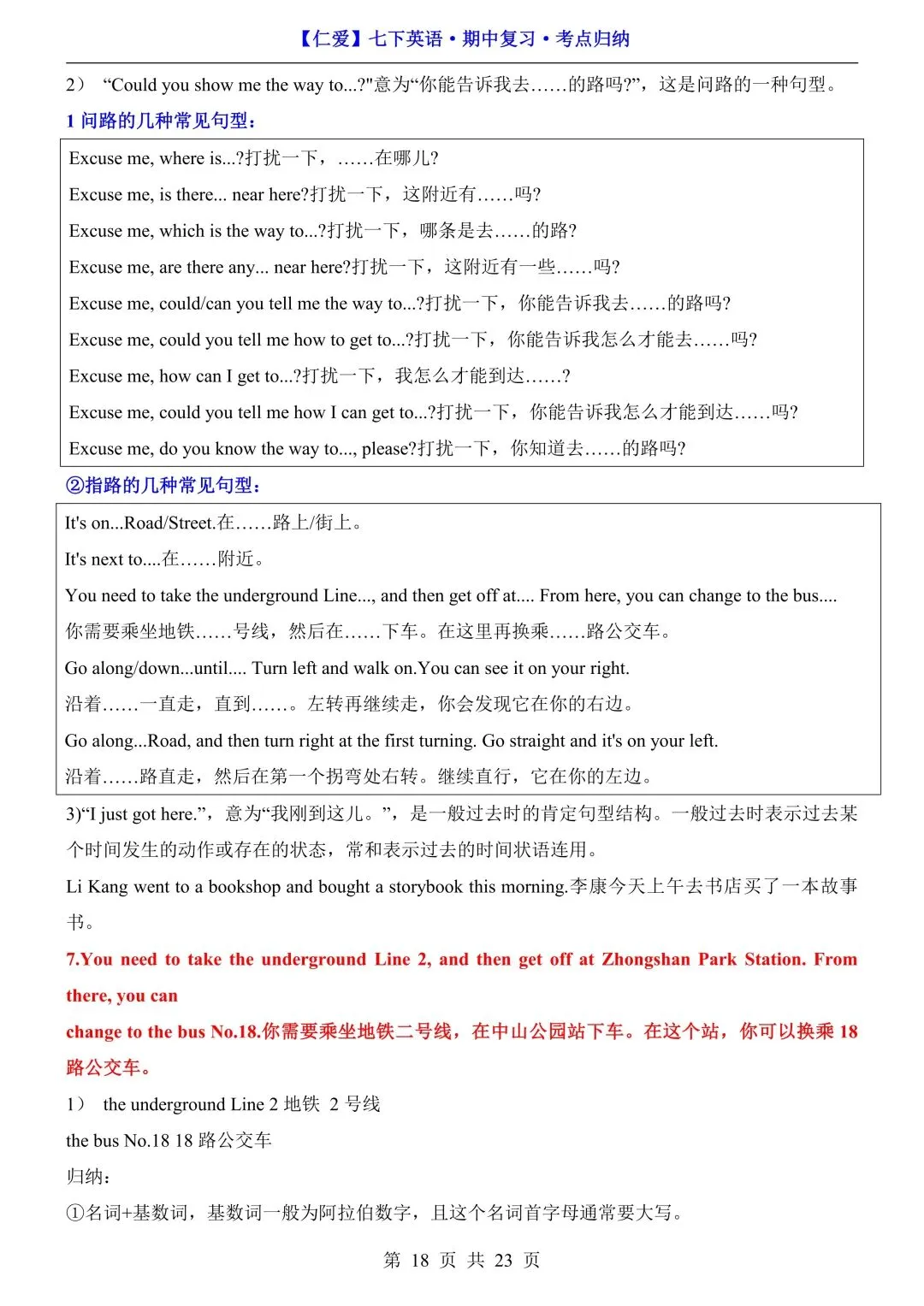 今天分享的是七年级下册语仁爱版英语《期中复习考点归纳》,大家可以按需自取,还可以分享到班级群或者朋友圈,我们一起助力孩子们高效学习。