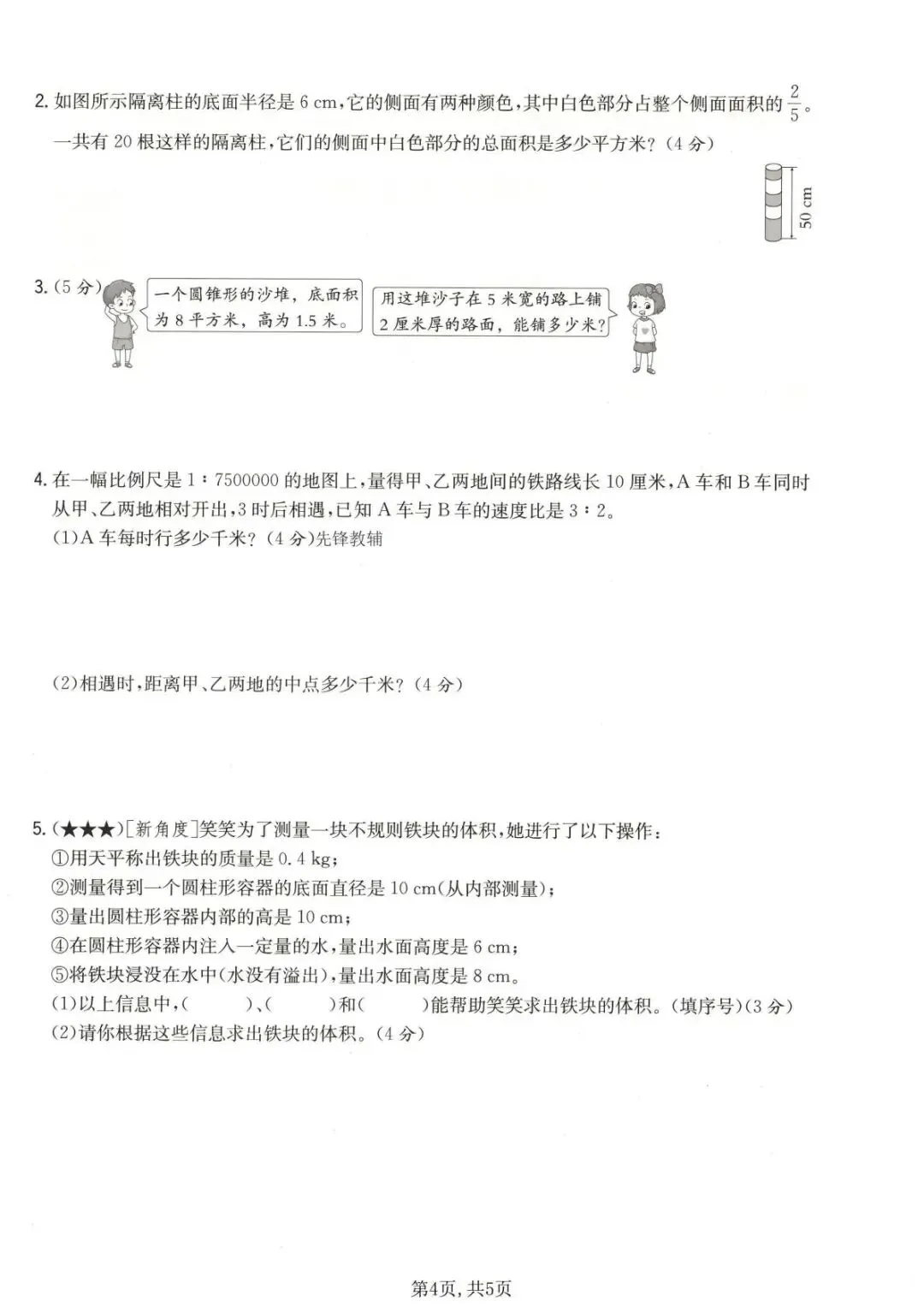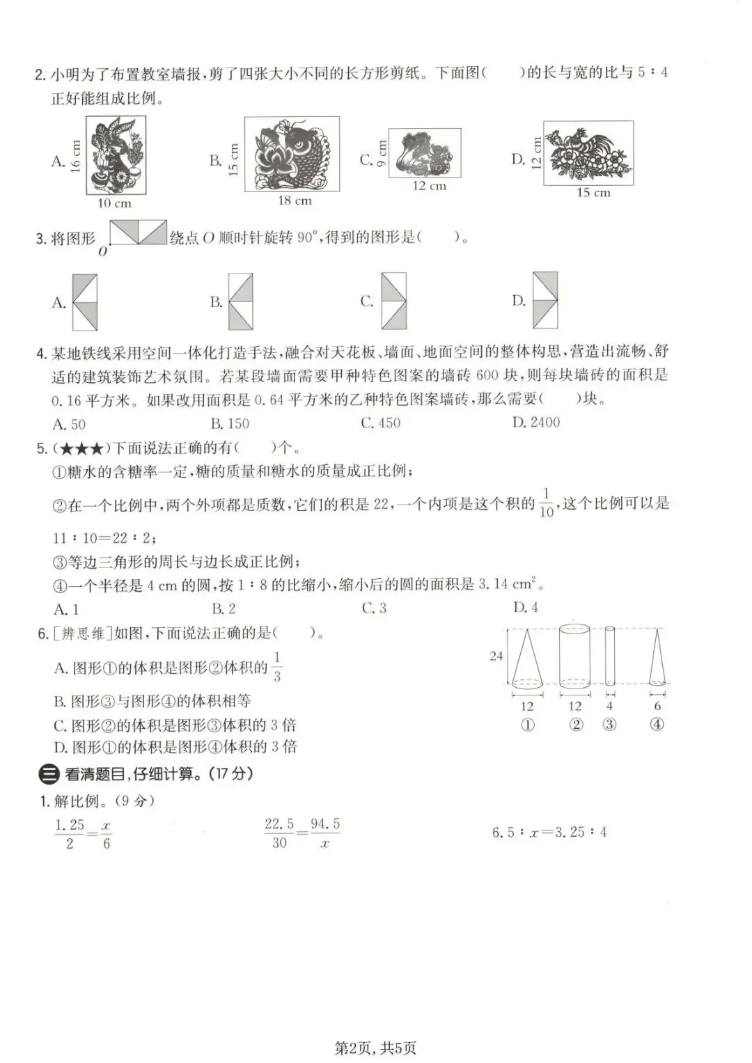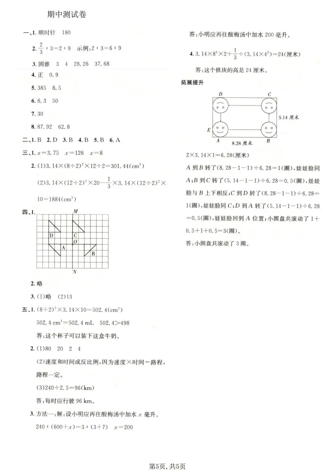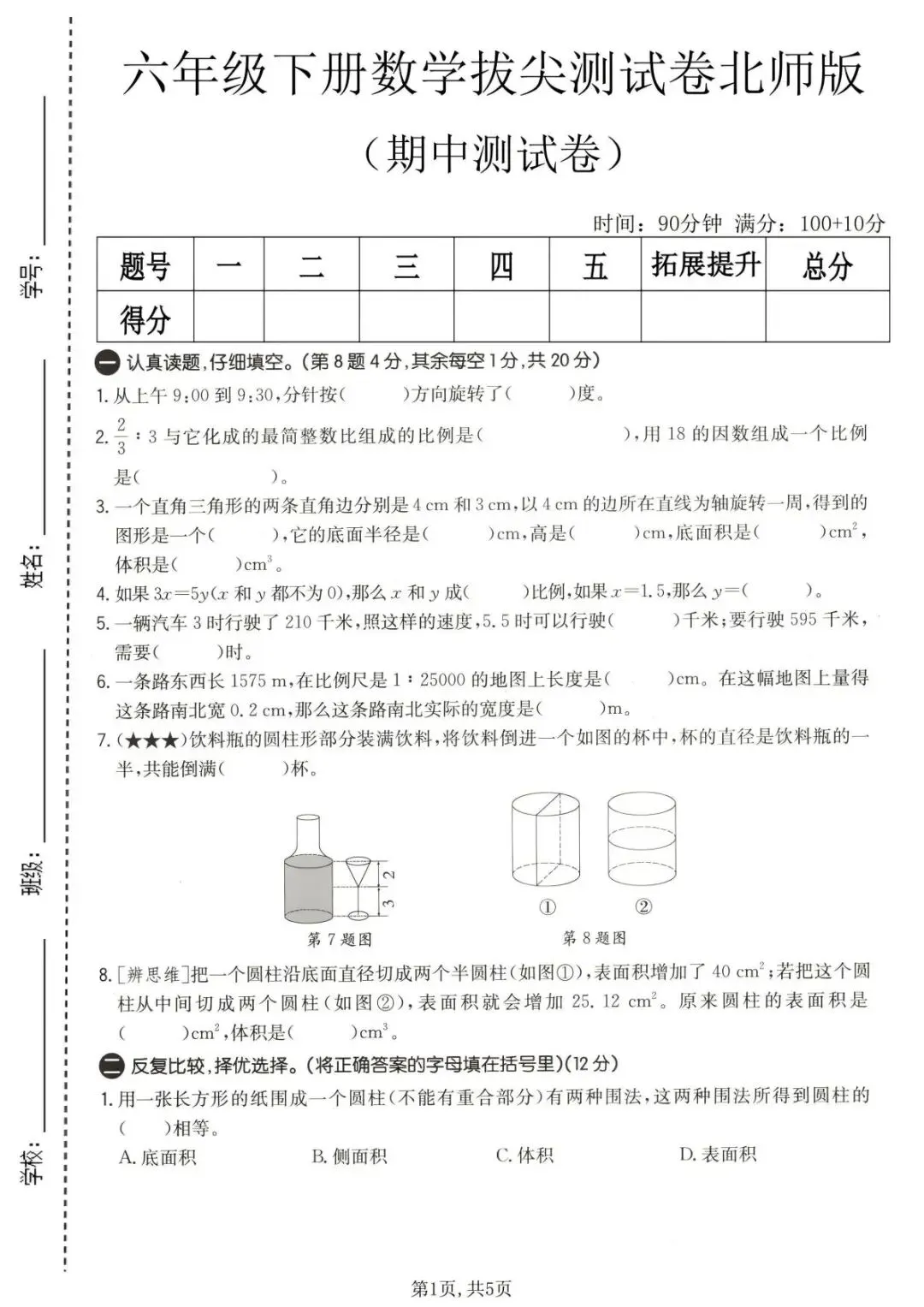 26春 | 北师大版六年级下册数学《期中模拟测试卷》(5套,有答案),可打印