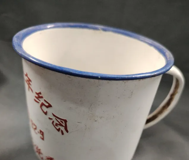 白底蓝边的,边沿磕掉瓷是常事,露出黑色的铁,泡茶喝水刷牙都能用,以前家里每人有一只自己的缸子,特别明确,别人不会乱拿,上面有时候还写着字,什么为人民服务啊、抗美援朝啊,现在想想那时候生活简单,一壶热水一只缸子,一天就过得挺好。