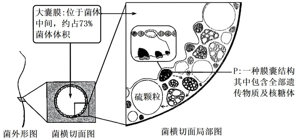 1.华丽硫珠菌是在红树林浅滩中新发现的一种细菌,单个细胞最长可达2cm,其生长的环境富含硫化物。该细菌形态、结构和部分生理过程如下图。下列叙述正确的是()