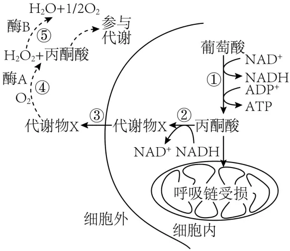 3.人线粒体呼吸链受损可导致代谢物X的积累,由此引发多种疾病。动物实验发现,给呼吸链受损小鼠注射适量的酶A和酶B溶液,可发生如图所示的代谢反应,从而降低线粒体呼吸链受损导致的危害。下列叙述正确的是()