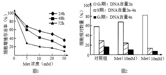 C.由图2结果可推测二甲双胍(Met)可将肝癌细胞的增殖阻滞在G1期