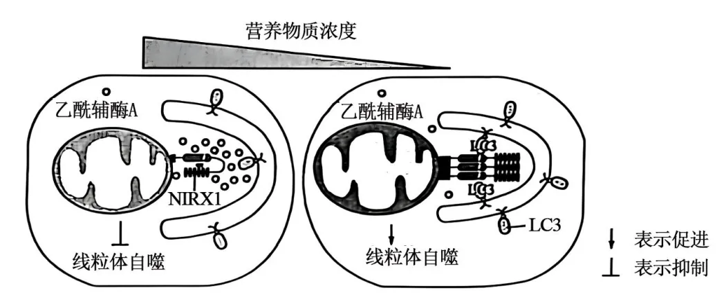 16.老化的线粒体会产生自由基,加速细胞衰老和产生疾病。“饿一饿,更健康”的核心机理是可以选择性清除老化的线粒体。葡萄糖氧化分解首先生成丙酮酸,丙酮酸再生成乙酰辅酶A,乙酰辅酶A可以再转运回细胞质。当细胞内营养减少时,细胞质中的乙酰辅酶A浓度下降,导致NLRX1蛋白构象改变从而与LC3蛋白结合,引起线粒体自噬,相关机制如图所示。下列叙述正确的是()