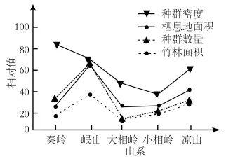 A.在五个山系中,大熊猫的环境容纳量最大的是秦岭