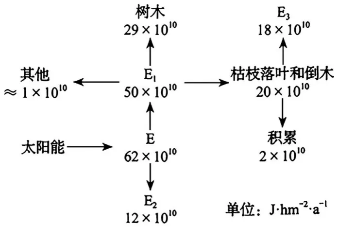 注:植物所固定的太阳能或所制造的有机物质称为初级生产量,其包括净初级生产量和自身呼吸消耗的能量。