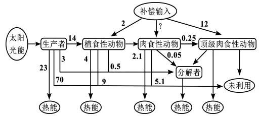 A.由图可知,肉食性动物需补偿输入的能量为5×103kg·m‒2·a‒1