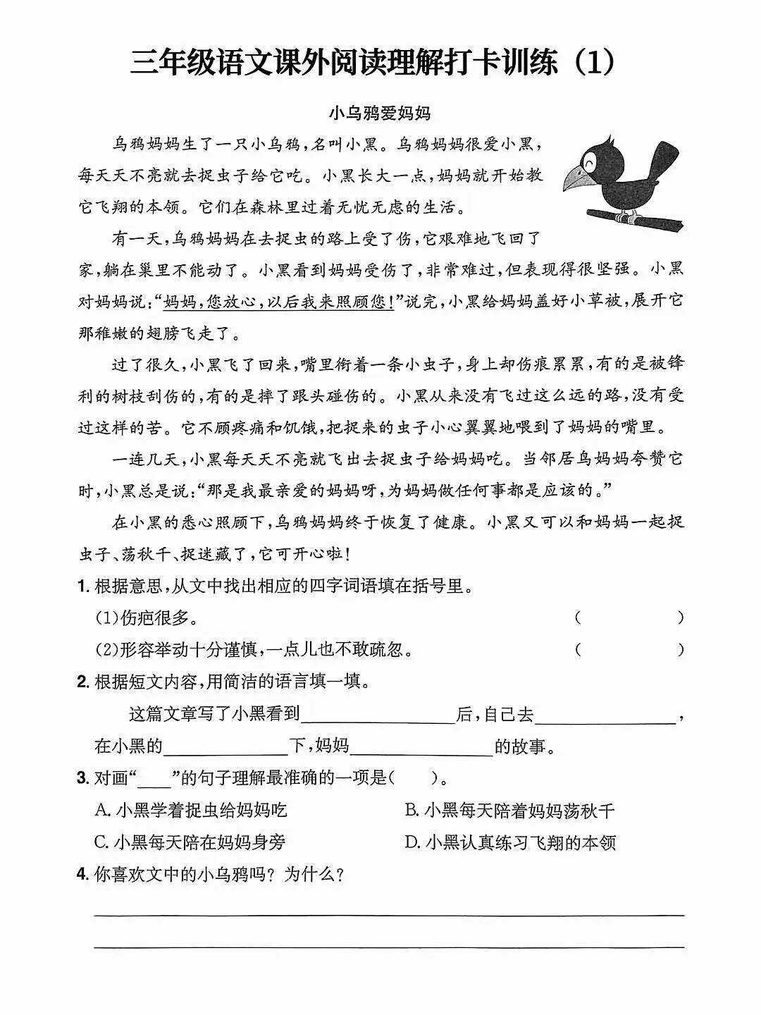 大家好,我是多雅妈妈,今天分享的是三年级下册语文课外阅读训练,有答案电子版可打印