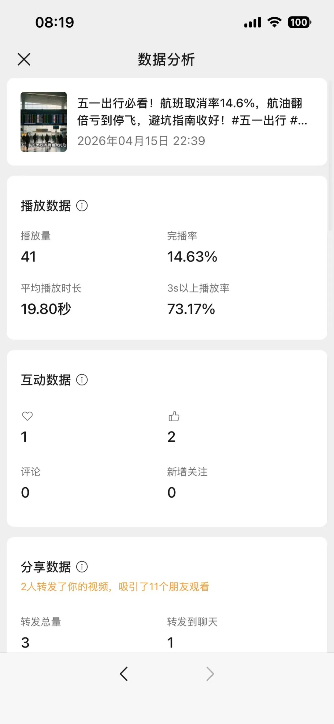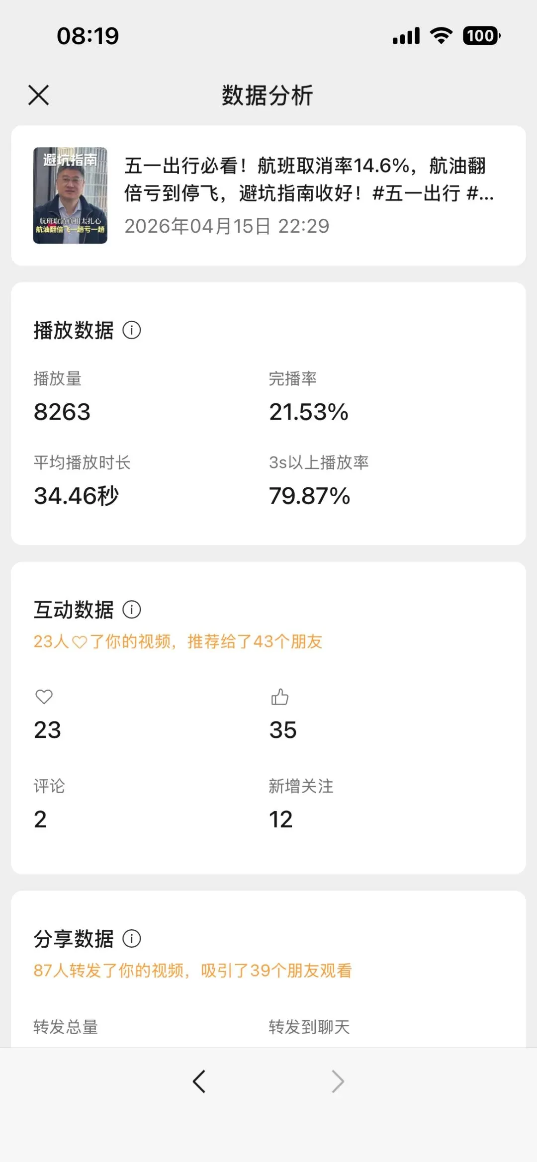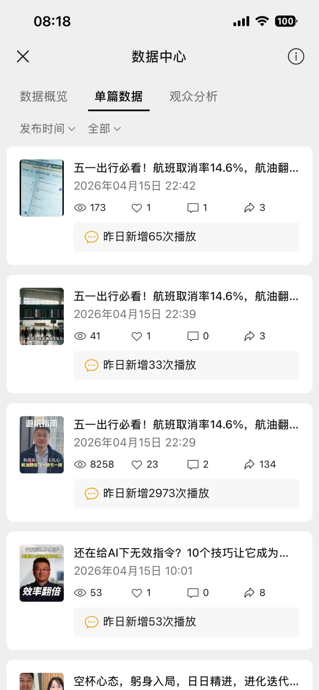 剪映的文案生成短视频的结果如上图,我还挺吃惊的,不应该呀,混剪的视频素材没有问题,可能是因为音色不是我自己的,毕竟在这个 得 IP 者得天下的年代,不用自己的形象,声音,可能信任度就大幅度下降了,当然也许还有其他原因,比如连续几条发布的时间一样等等,我下次会录制下自己的声音,克隆形象,在测试一下