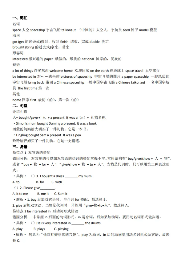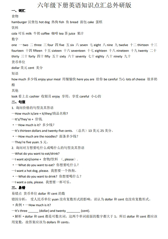 六年级英语下册(外研三起)知识点汇总(电子版可打印)