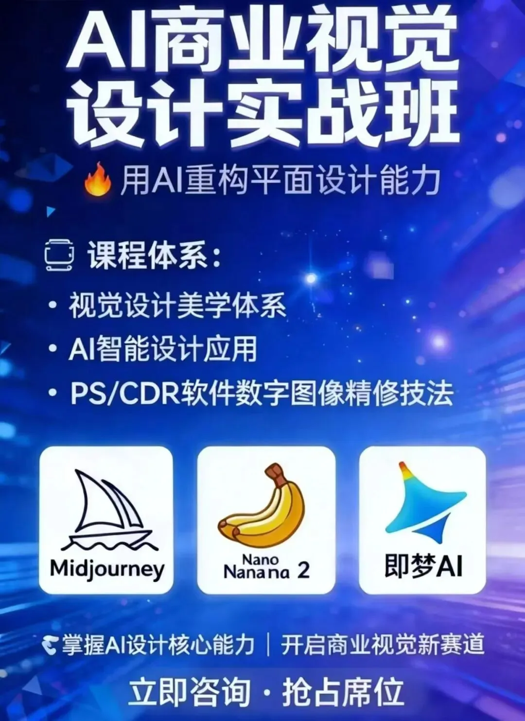真正的破局,从来不是 “会用 AI”,而是用 AI 放大设计能力:以扎实的设计理论为根基,用 AI 高效落地创意,用后期精修打磨商业级作品,成为市场稀缺的「AI + 设计」复合型人才,这才是 AI 时代设计师的核心竞争力。