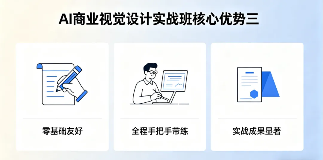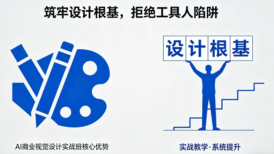 区别于市面上只教 AI 操作的课程,我们将视觉设计美学体系作为核心根基: