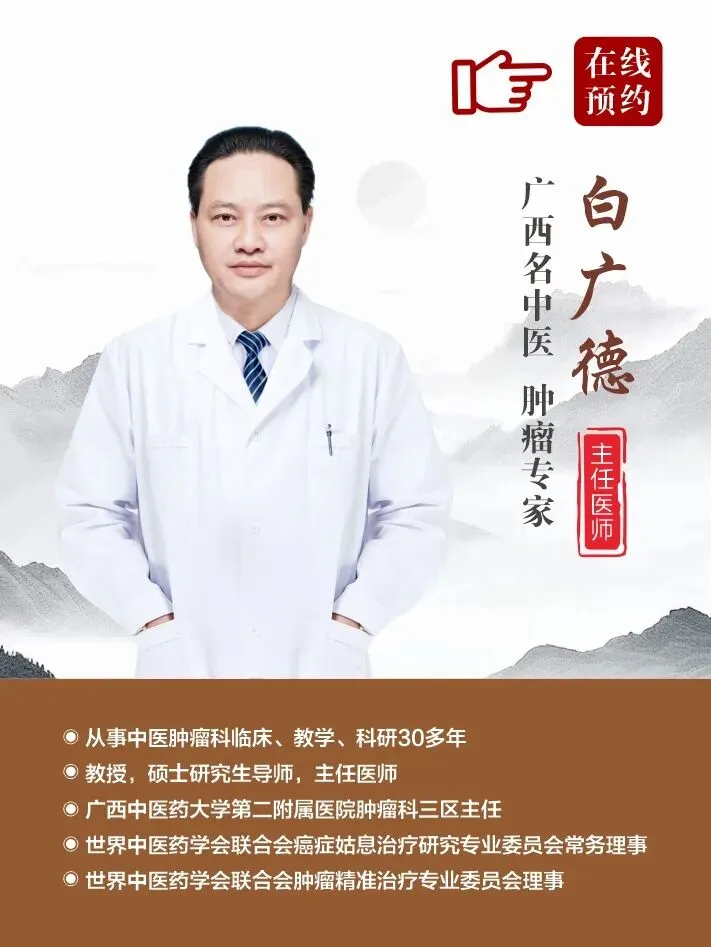 我是广西名中医白广德,在广西中医药大学附属瑞康医院从事肿瘤临床三十余年,每天面对最多的,就是患者和家属等待复查时的紧张与焦虑。