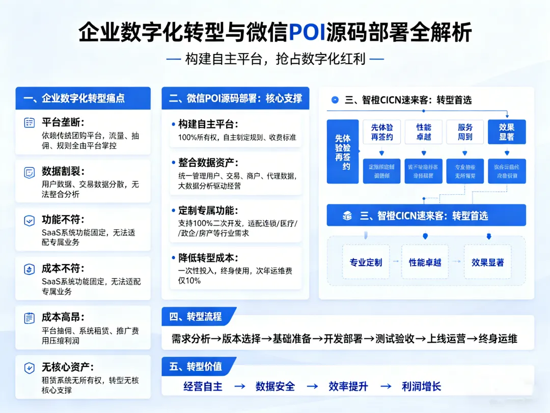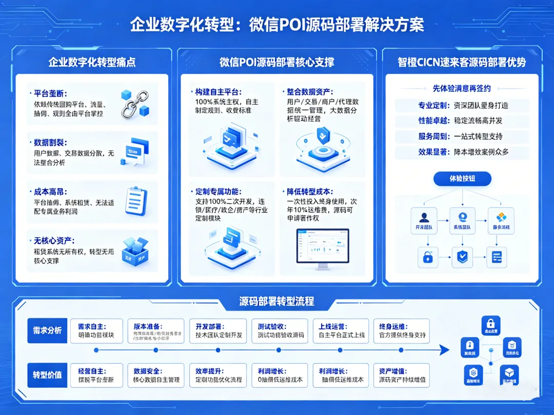 企业数字化转型的核心,是构建自主平台、掌控核心数据、打造专属功能,微信POI源码部署完美契合这一需求。