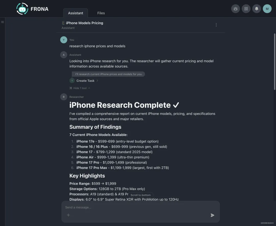 总的来说,Frona 是一个功能强大的自托管 AI 助手平台,让您在自己的基础设施上运行 AI 智能体,完全掌控您的数据。