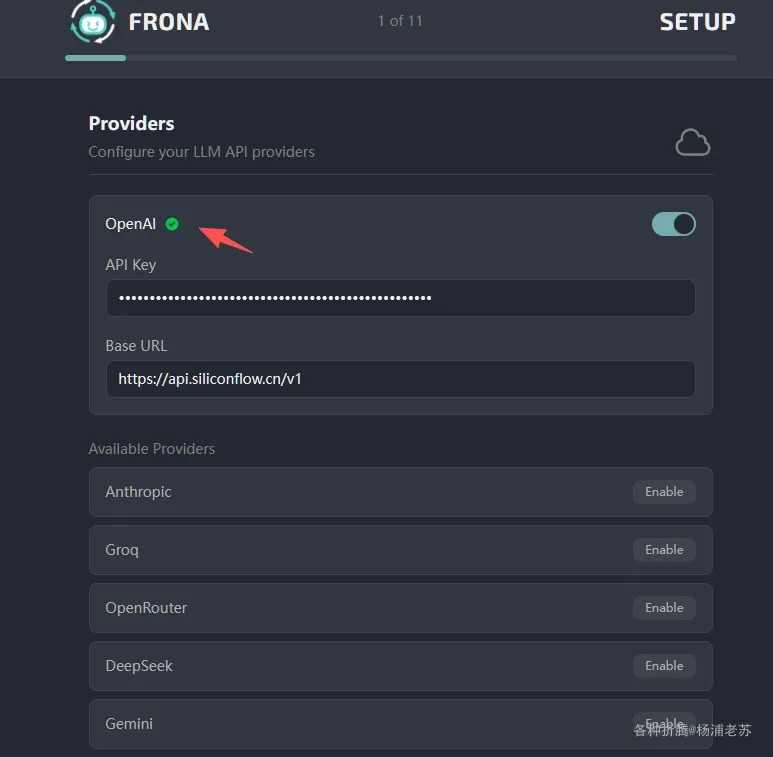 必须启用至少一个,老苏选了 OpenAI,原本打算还是以 硅基流动 为例