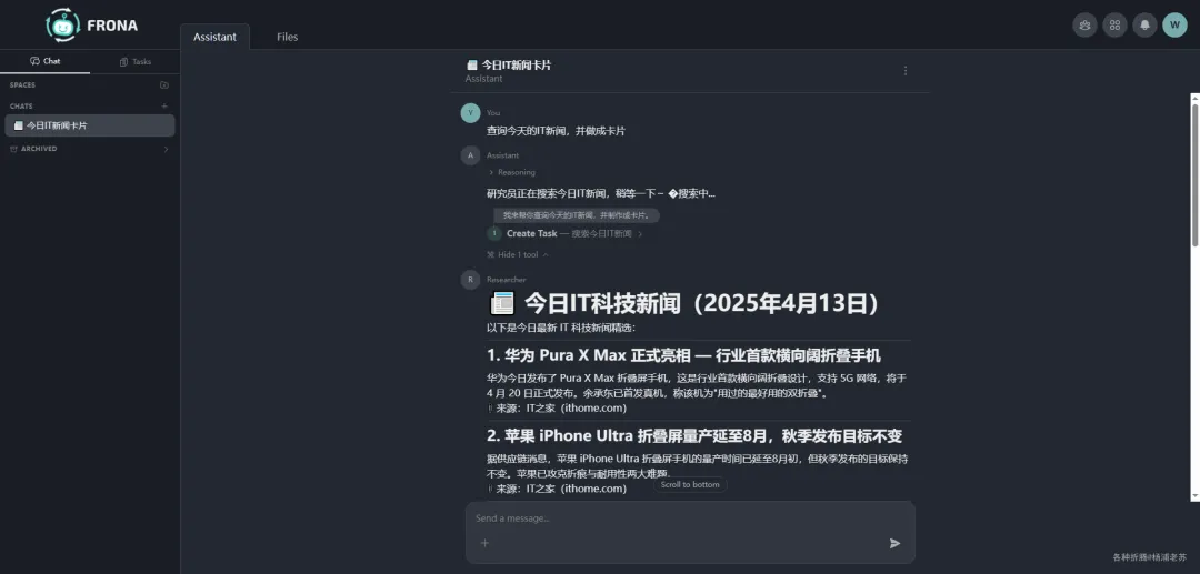 Frona: Personal AI Assistant – 开源项目主页地址:https://github.com/fronalabs/frona