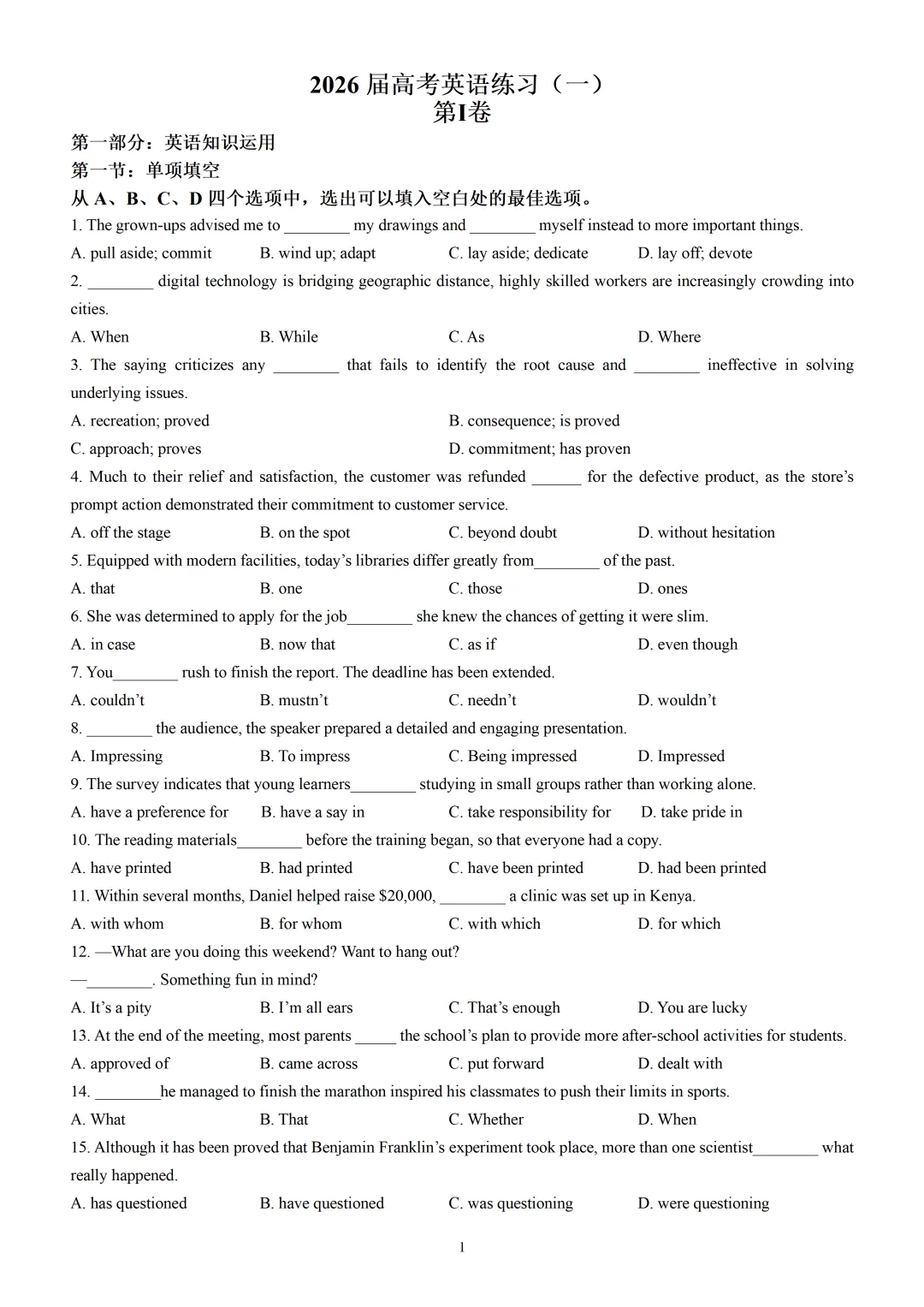 【可下载】2026高考英语二模模拟试题一(附解析) 点击上方“蓝字”免费关注! 本套试卷完整版+答案解析下载入口 关注“卿卿侃古今”公众号 点击左下角阅读原文可下载 相关链接: 2007-2025年天津市高考英语真题汇总(持续更新中~) 2011-2023年天津高考英语听力真题在线测试 【高考英语听力在线测试】高考听力机考模拟试题大全(持续更新中) 【可下载】2025-2026年高中英语试题汇总(附解析)【持续更新中】 【汇总】高中英语月考和期中期末试题(持续更新中~) 【题库】高一英语试题汇编(持续更新中~) 【题库】高二英语试题汇编(持续更新中~) 【题库】高三英语试题汇编(持续更新中~) 【可下载】高三英语上学期期末试题16套(附解析) 【可下载】高二英语上学期期末试题10套(附解析) 【可下载】高一英语上学期期末试题汇9套(附解析) 【可下载】2025-2026学年度高一高二高三开学考试模拟试卷(天津专用)(附解析) 新外研版高中英语高清电子课本、课文原文和译文、单元同步复习资料和试题【持续更新中】 【目录1】高中英语阅读理解限时训练大全(持续更新中~) 【目录2】高中英语完形填空限时训练大全(持续更新中~) 【目录3】高中英语书面表达大全(持续更新中~) 【目录4】高中英语听力训练大全(持续更新中~) 【目录5】高中英语单选题大全(持续更新中~) 【目录6】高中英语语法题大全(持续更新中~) 【目录7】高中英语阅读表达题大全(持续更新中~) 【目录8】科普知识汇总 【目录9】中高考学法知识汇总 【目录10】高考英语真题+名校模拟真题+月考和期中期末试题(持续更新中~) 【目录11】暑期高考英语备考资料大全持续更新中~【汇总】中高考志愿填报资料大全 【汇总】高中英语月考和期中期末试题(持续更新中~) 【汇总】2025届高三英语一模试题(附解析) 【汇总】2024届高三英语一模二模三模试题(附解析) 【汇总】2024届高考英语押题卷(附解析) 【汇总】2025届高三英语周考综合练(附解析) 【题库】高三英语限时训练(持续更新中~) 【模拟】2025届高三英语听力机考模拟试题在线测试 【高考词汇】(新)外研版高中英语全七册词汇表(附音频) 【中考词汇】初中英语外研版必备单词表(完整版),可打印 建议收藏保存 点击阅读原文查更多