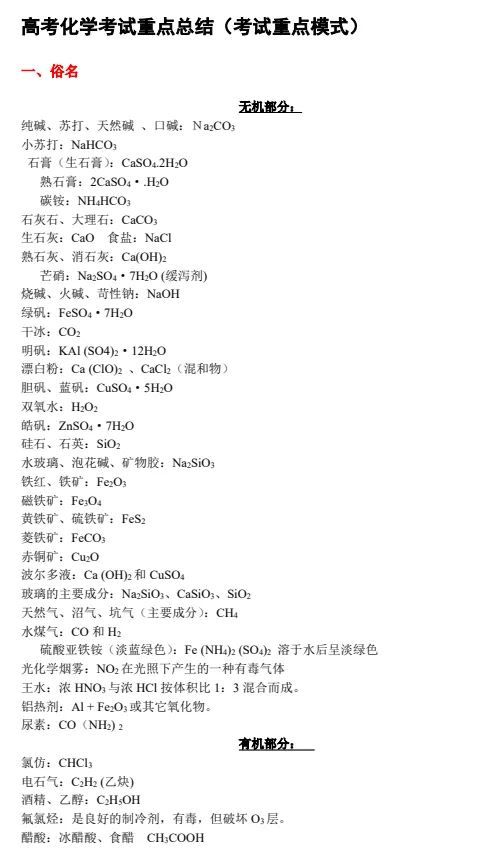 116.高考化学方程式总结(精美排版)