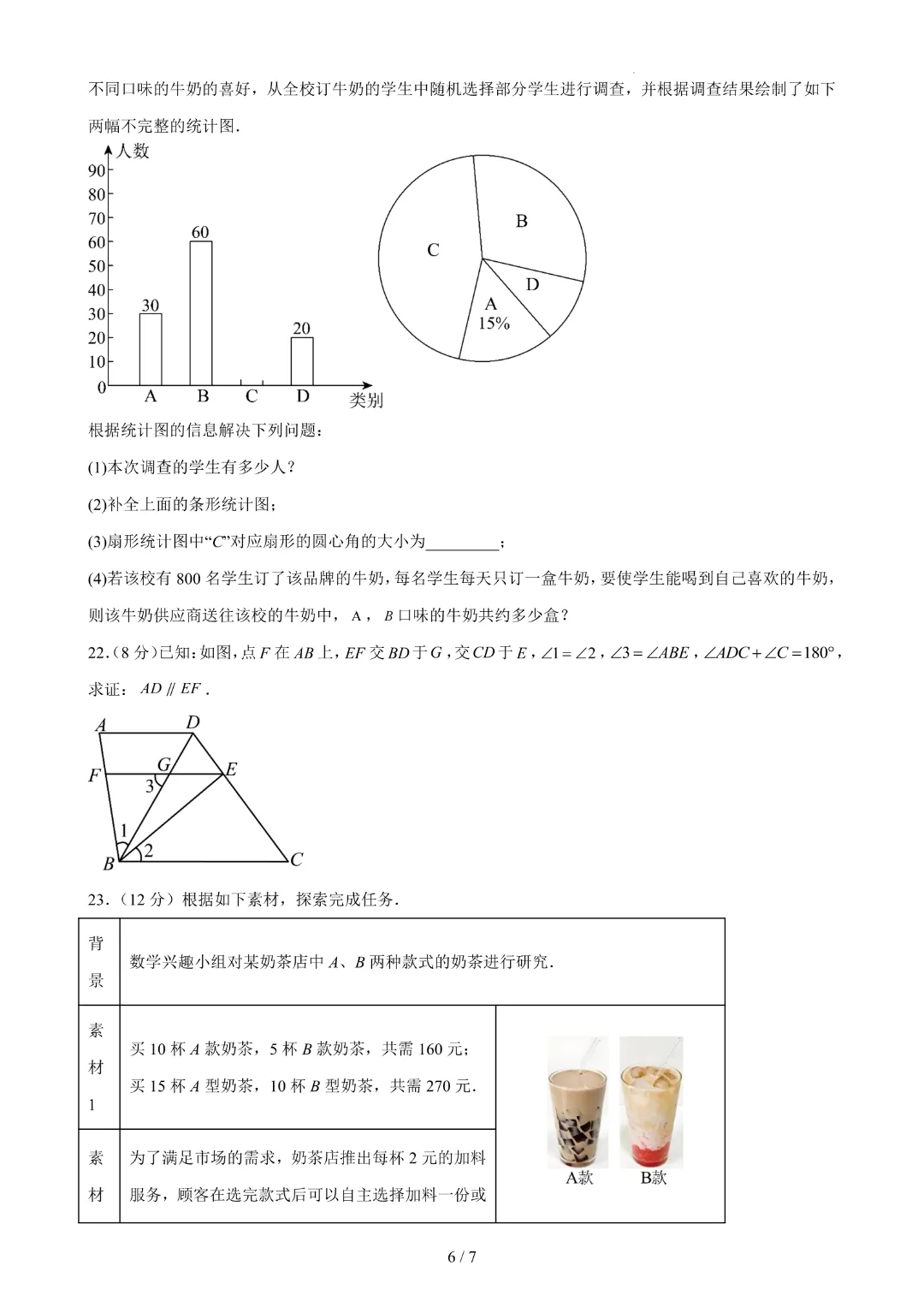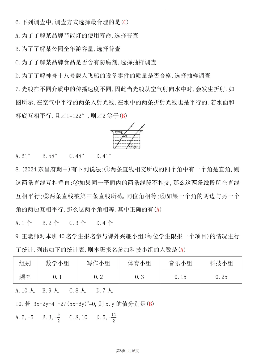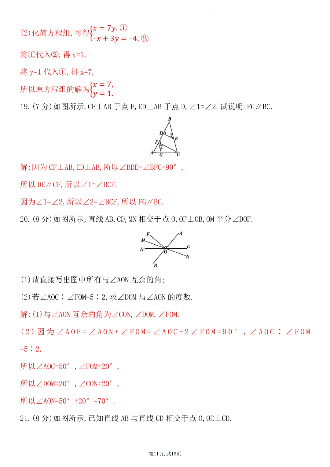 【青岛版】26年七年下册数学《期中模拟测试卷 共2套附答》完整电子版可打印