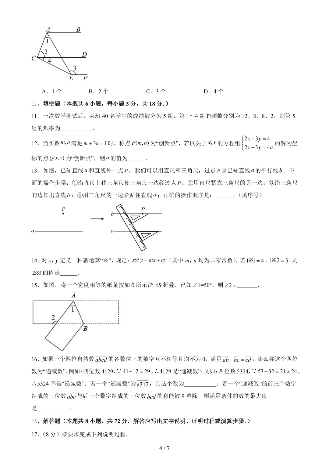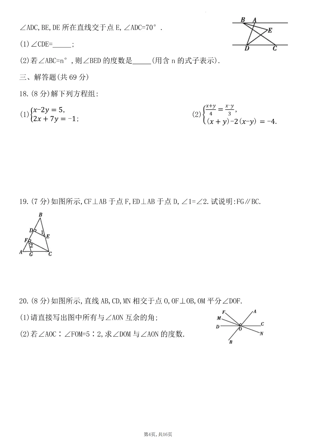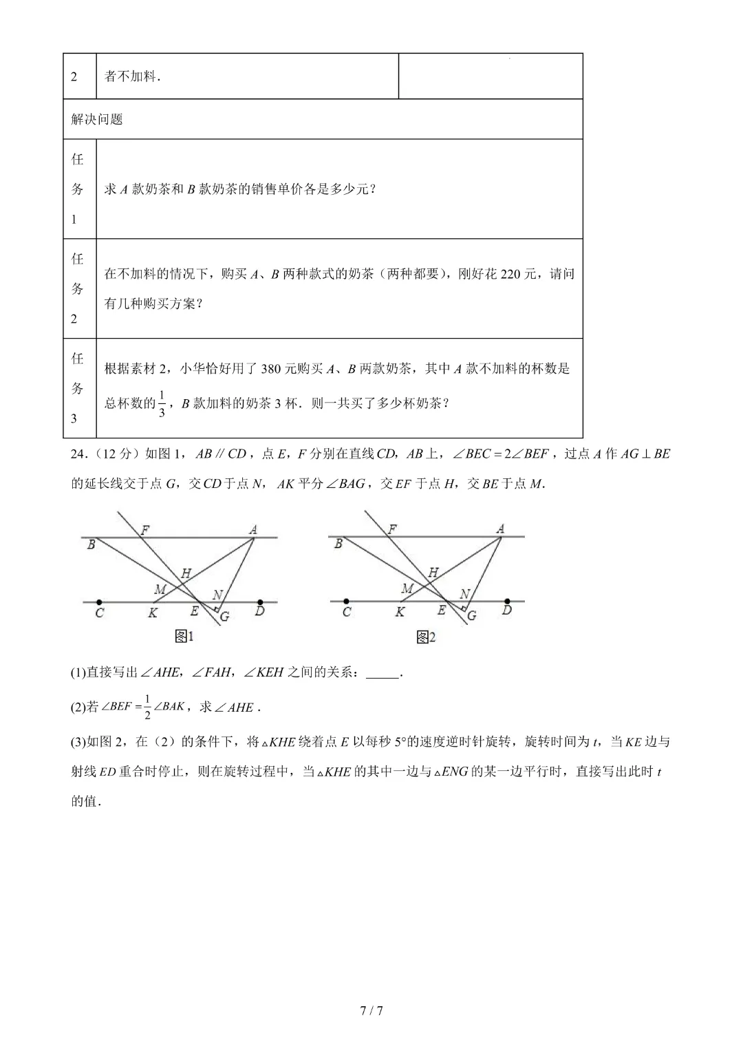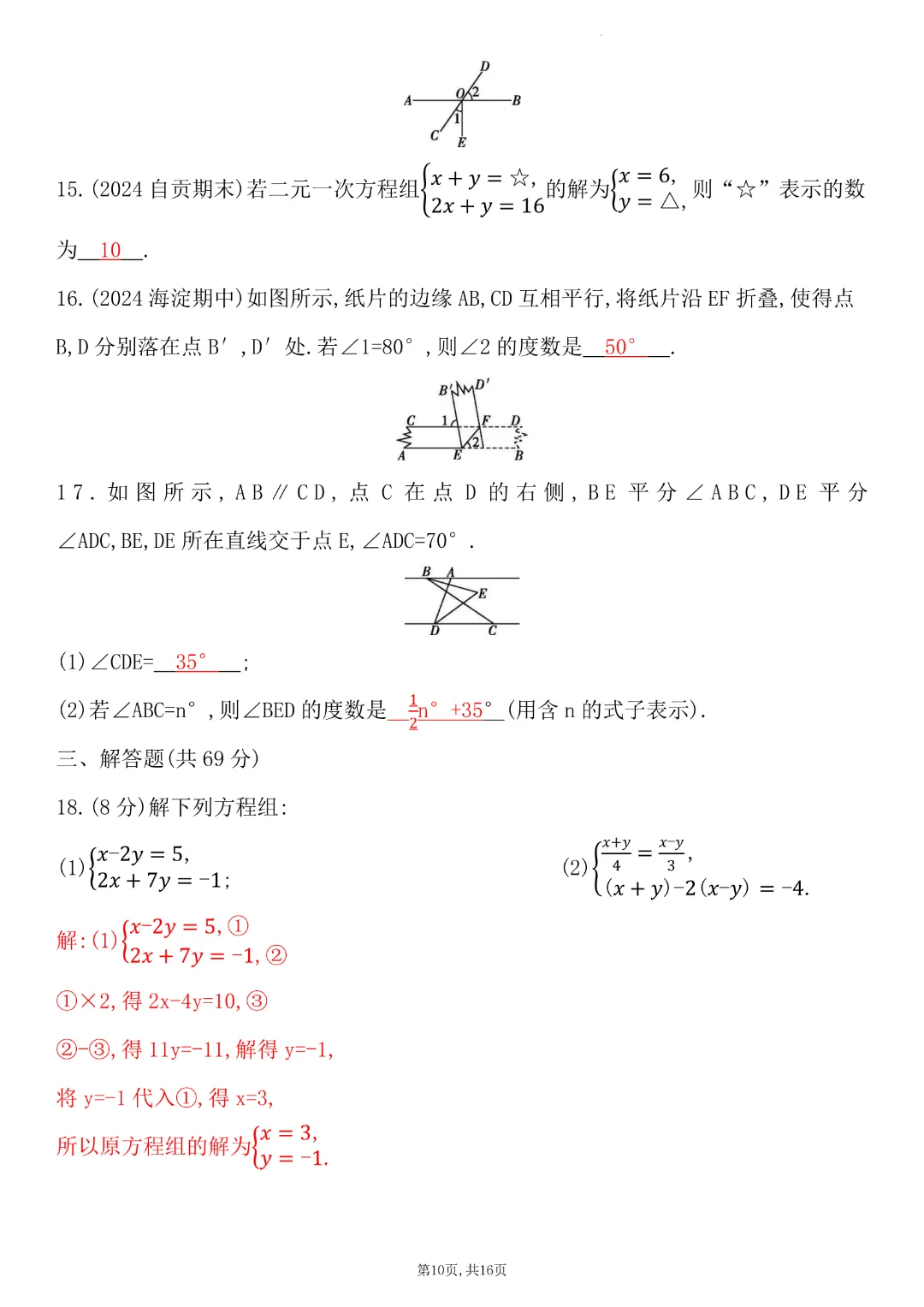 【青岛版】26年七年下册数学《期中模拟测试卷 共2套附答》完整电子版可打印