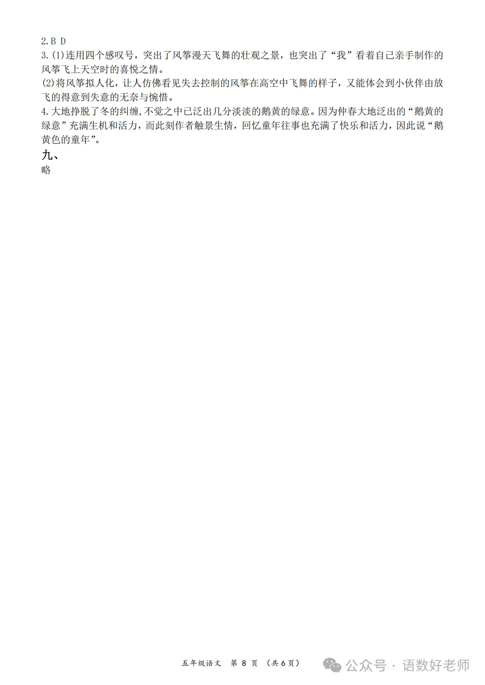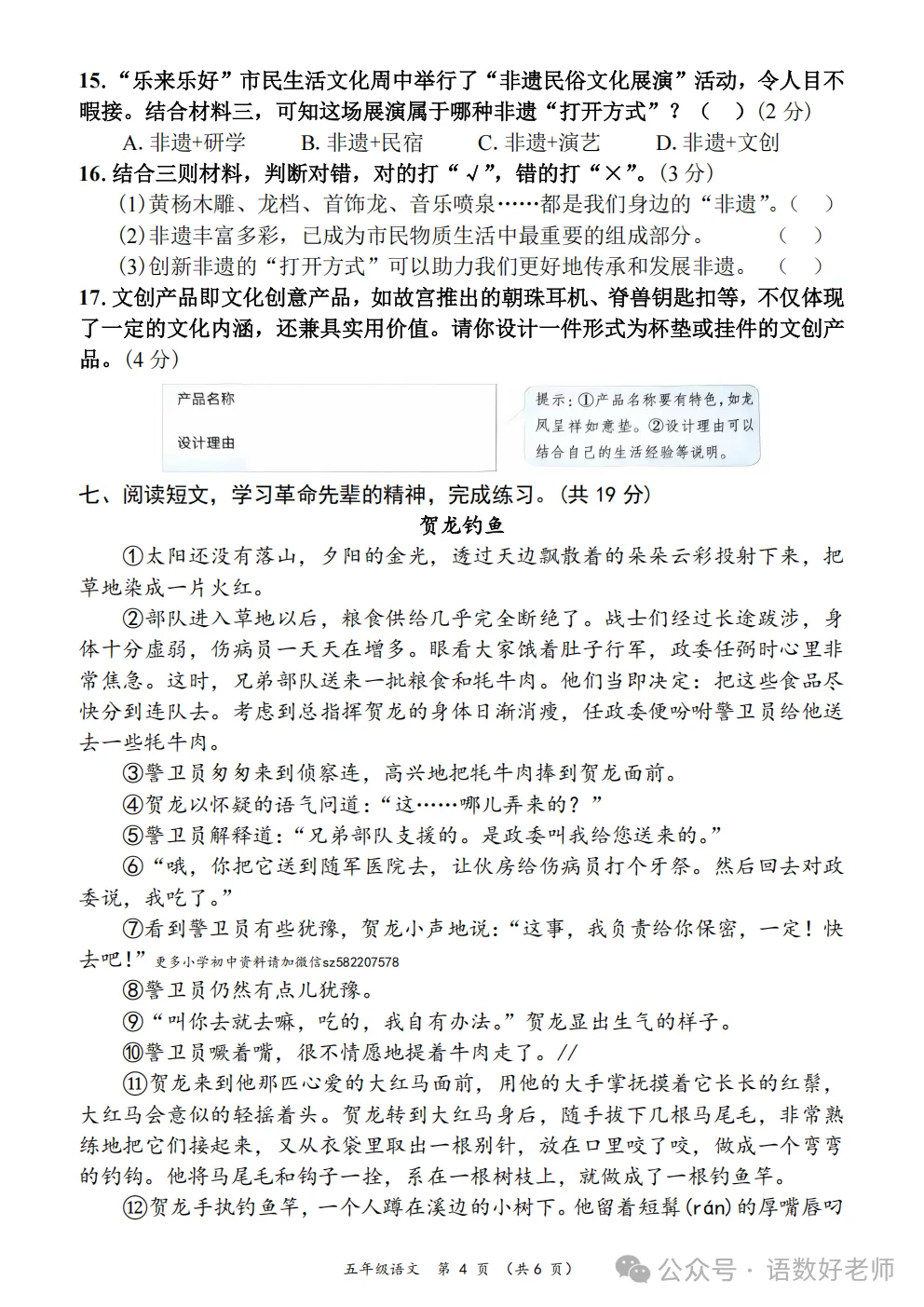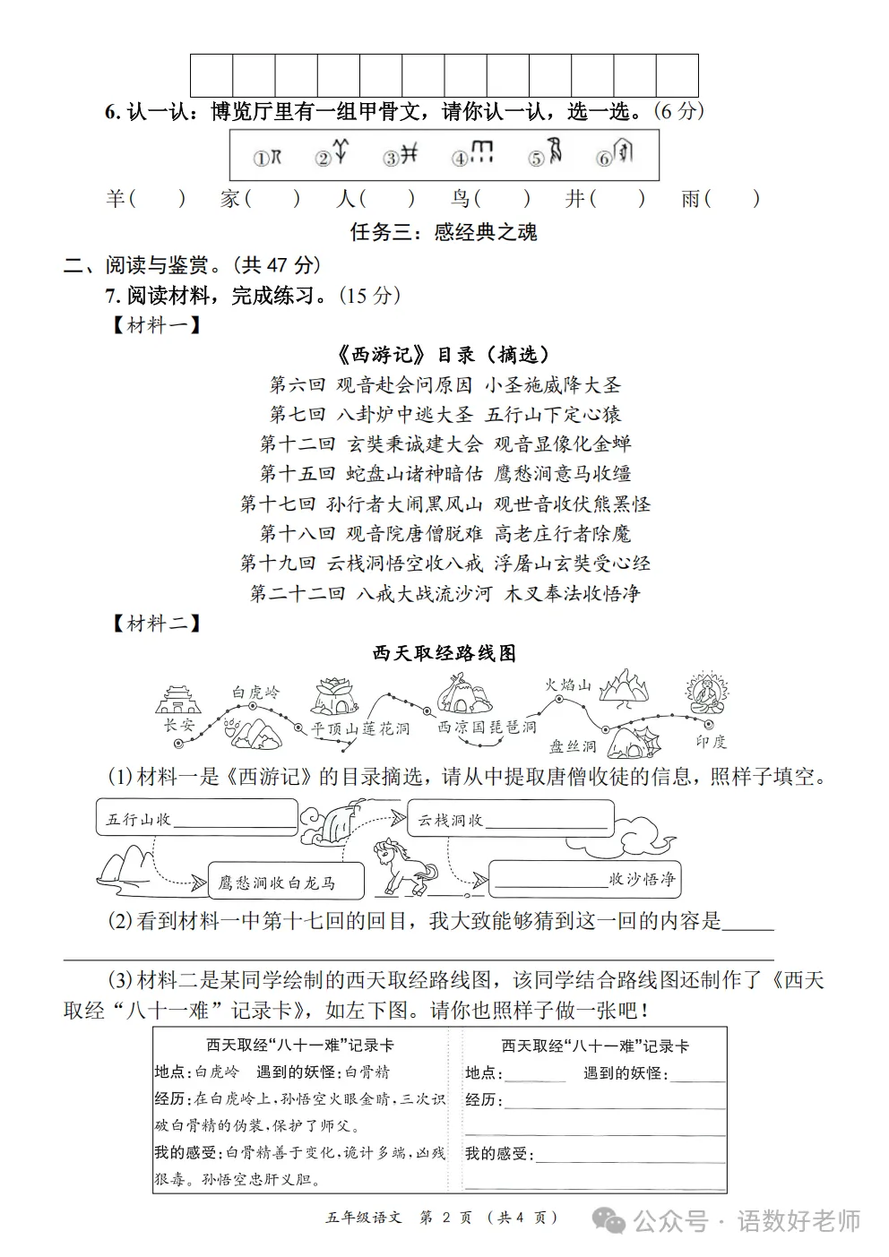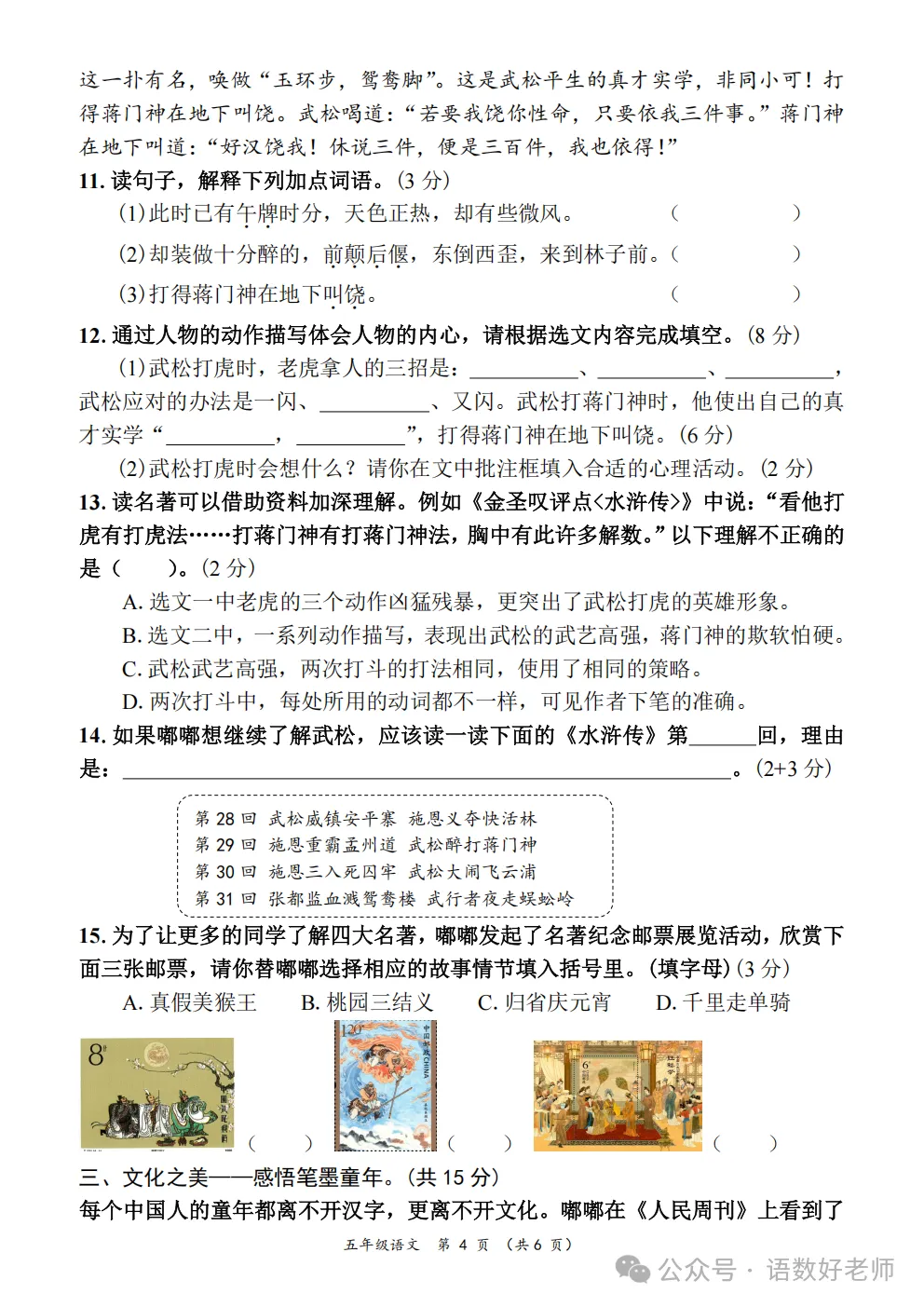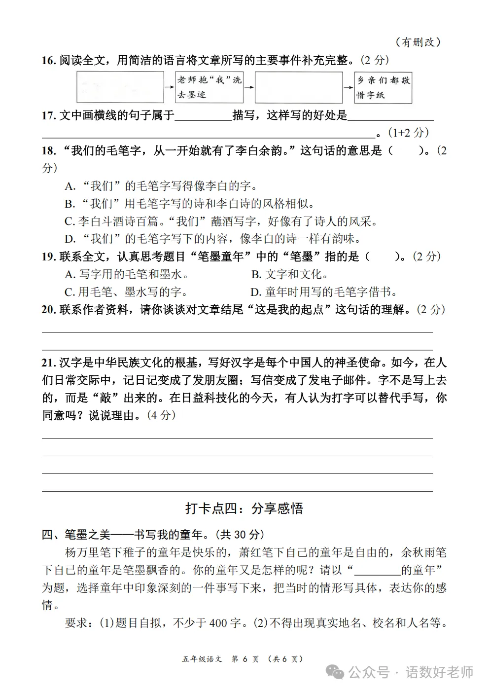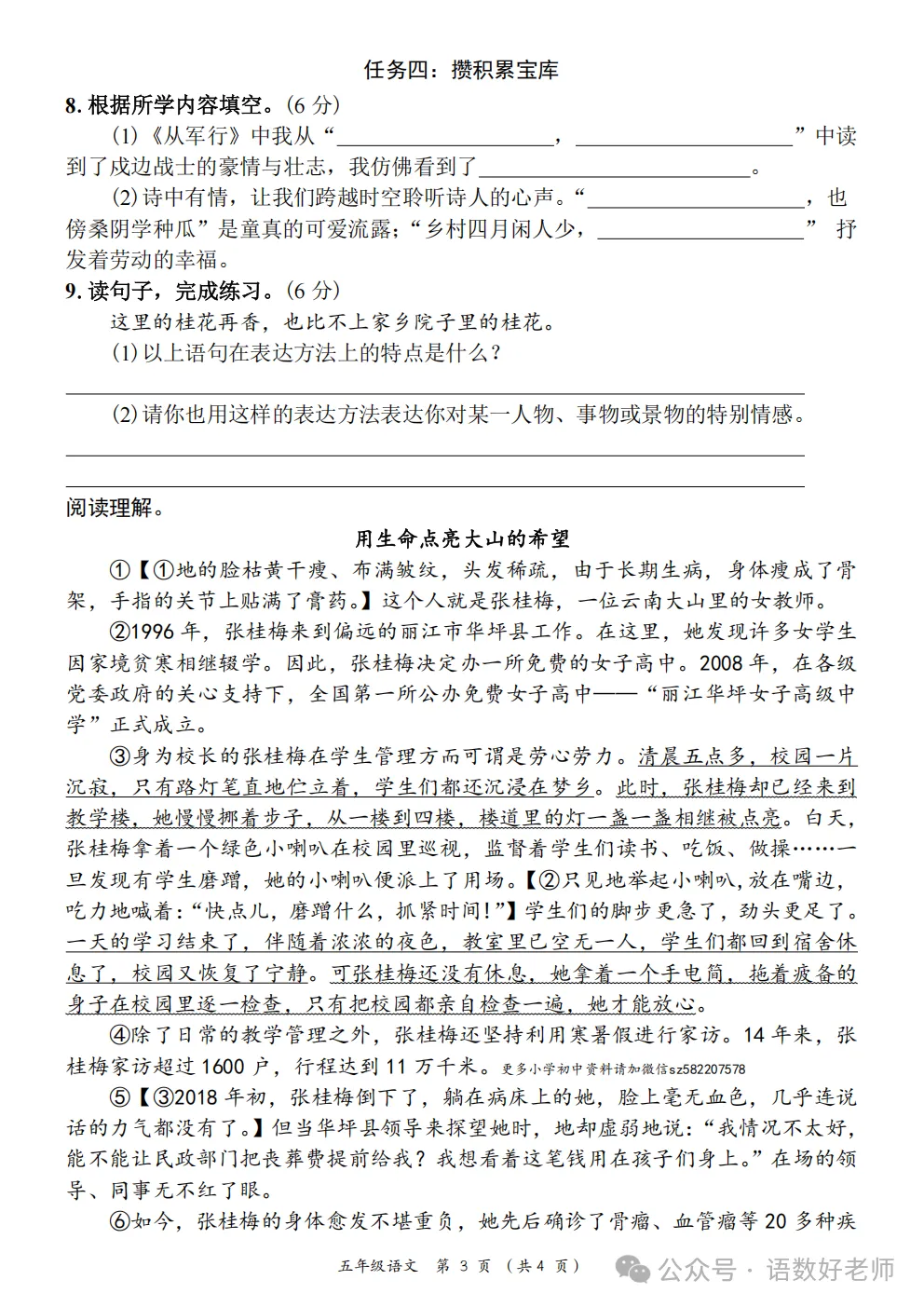 五年级下册语文《期中真题测试卷》附有答案可免费下载语数电子版试卷