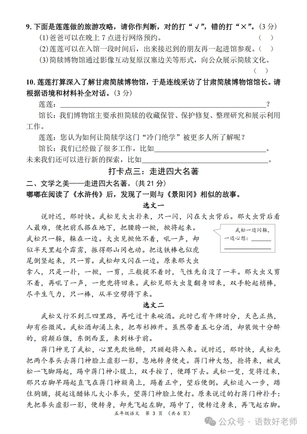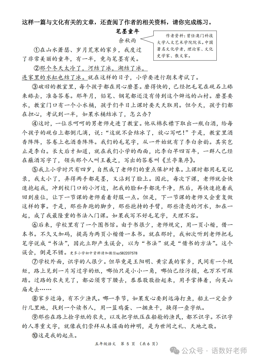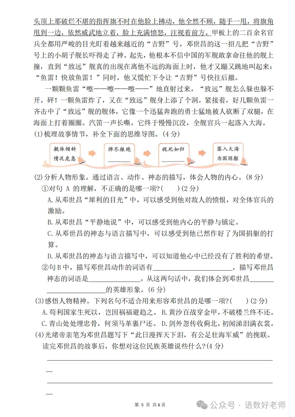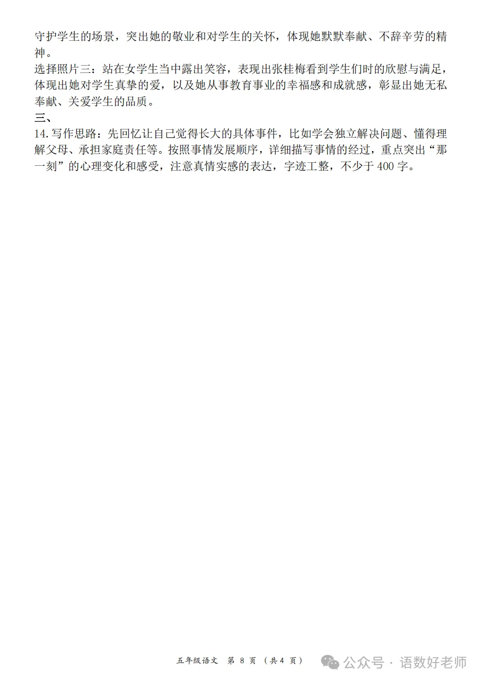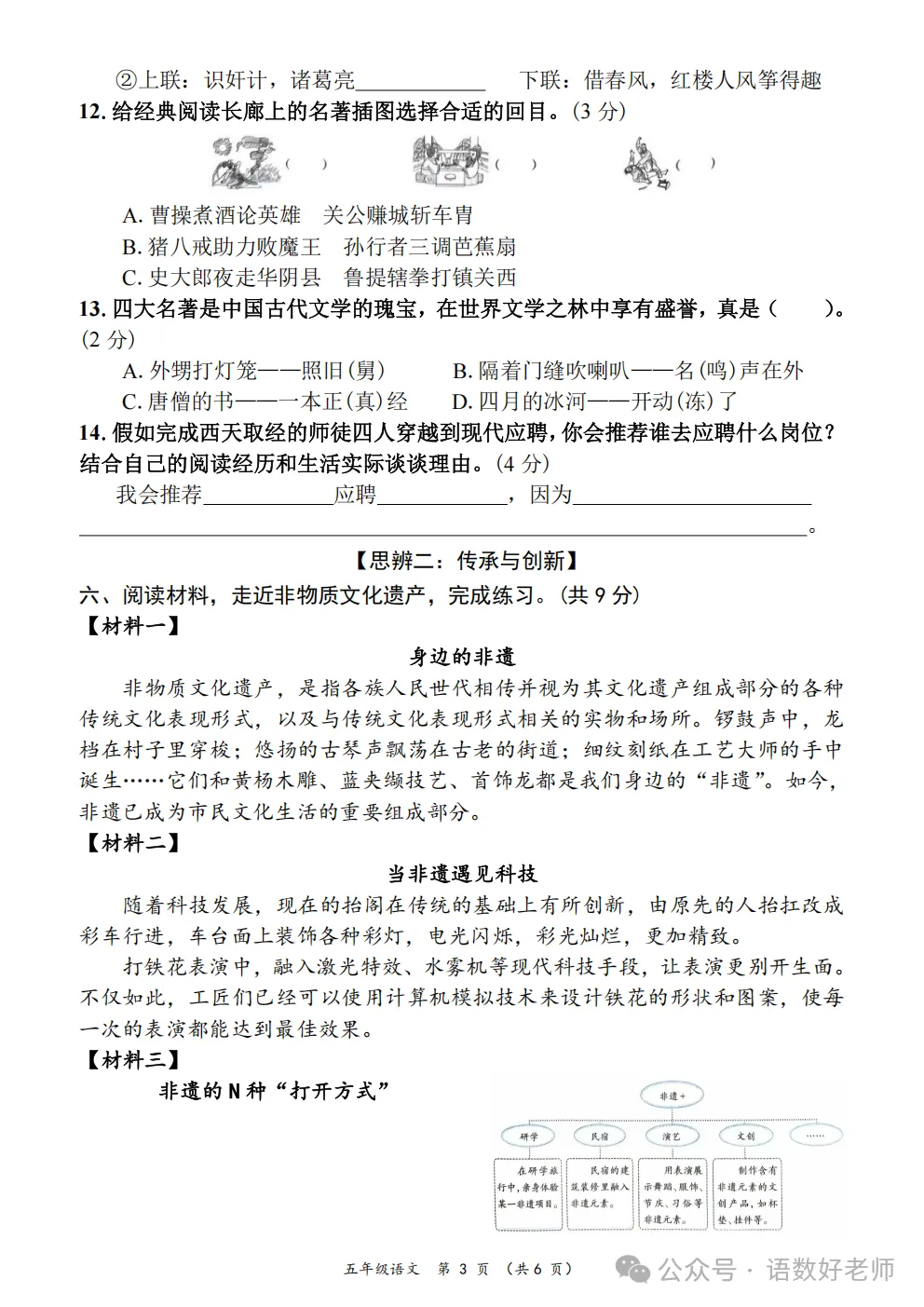 五年级下册语文《期中真题测试卷》附有答案可免费下载语数电子版试卷