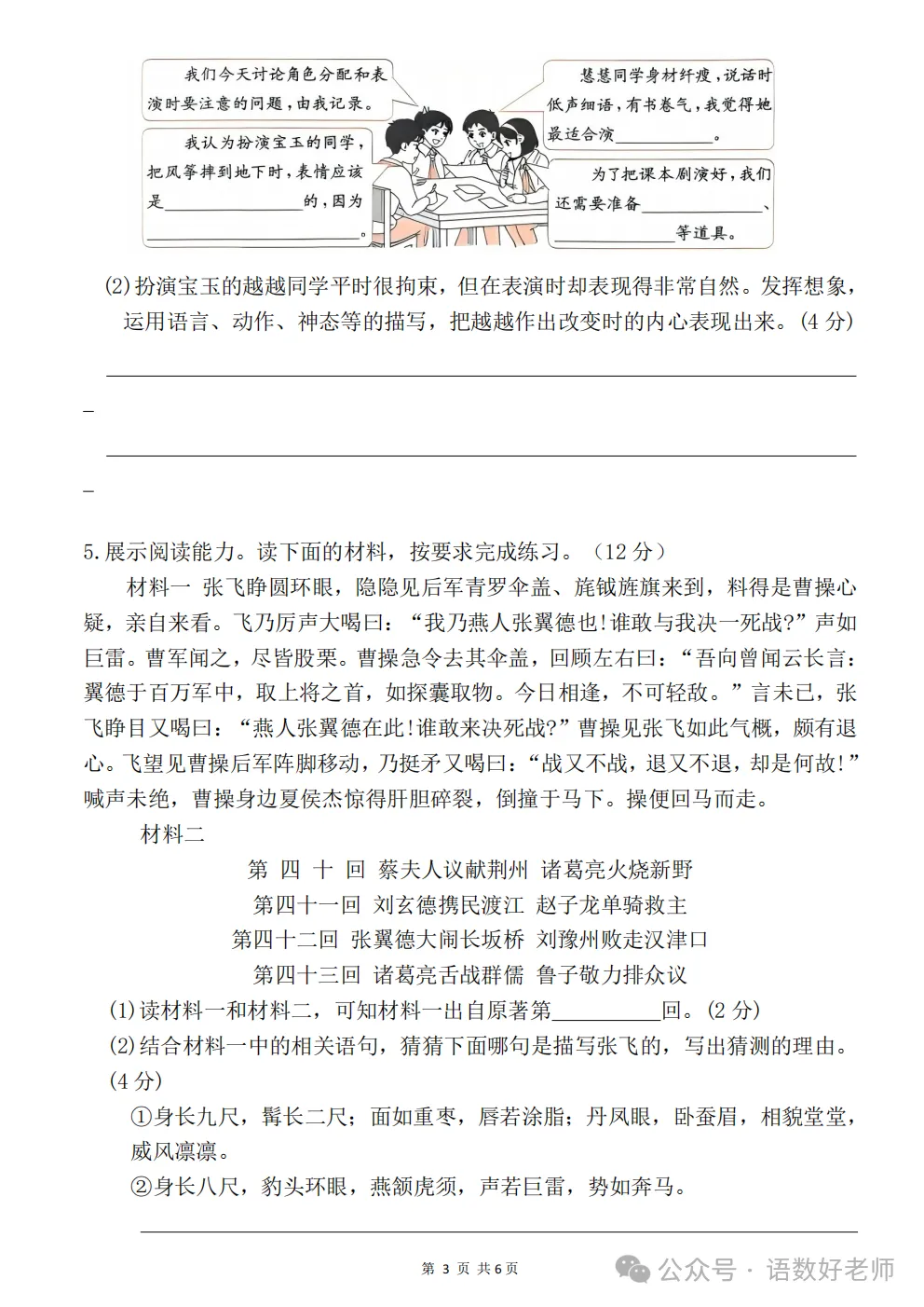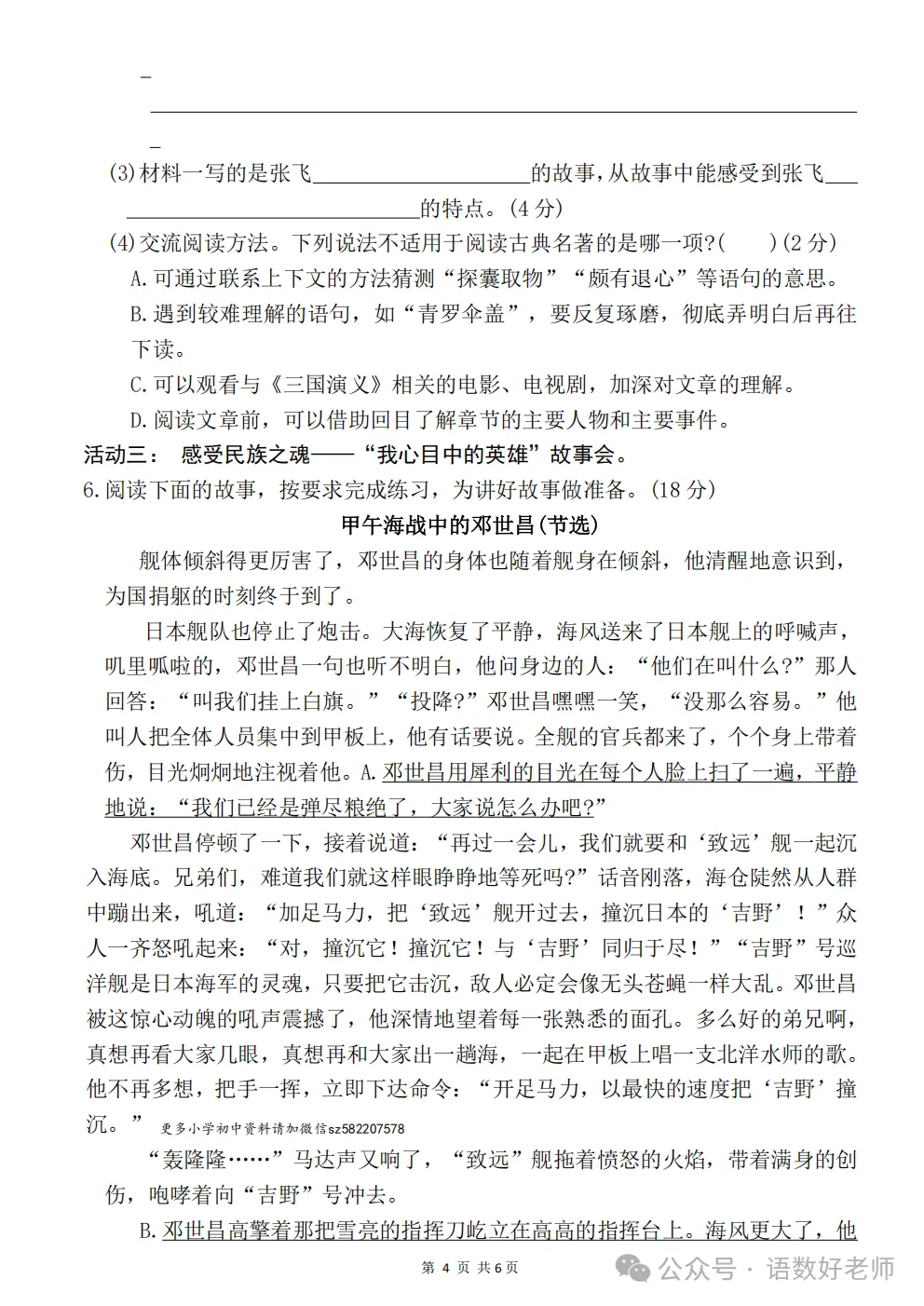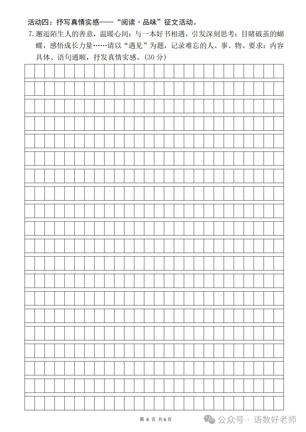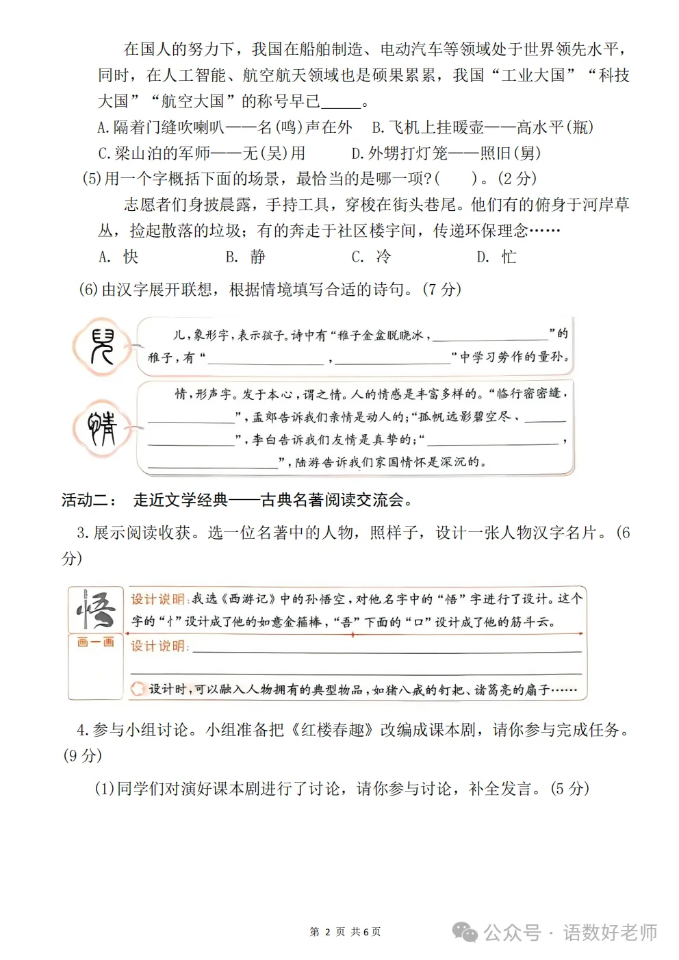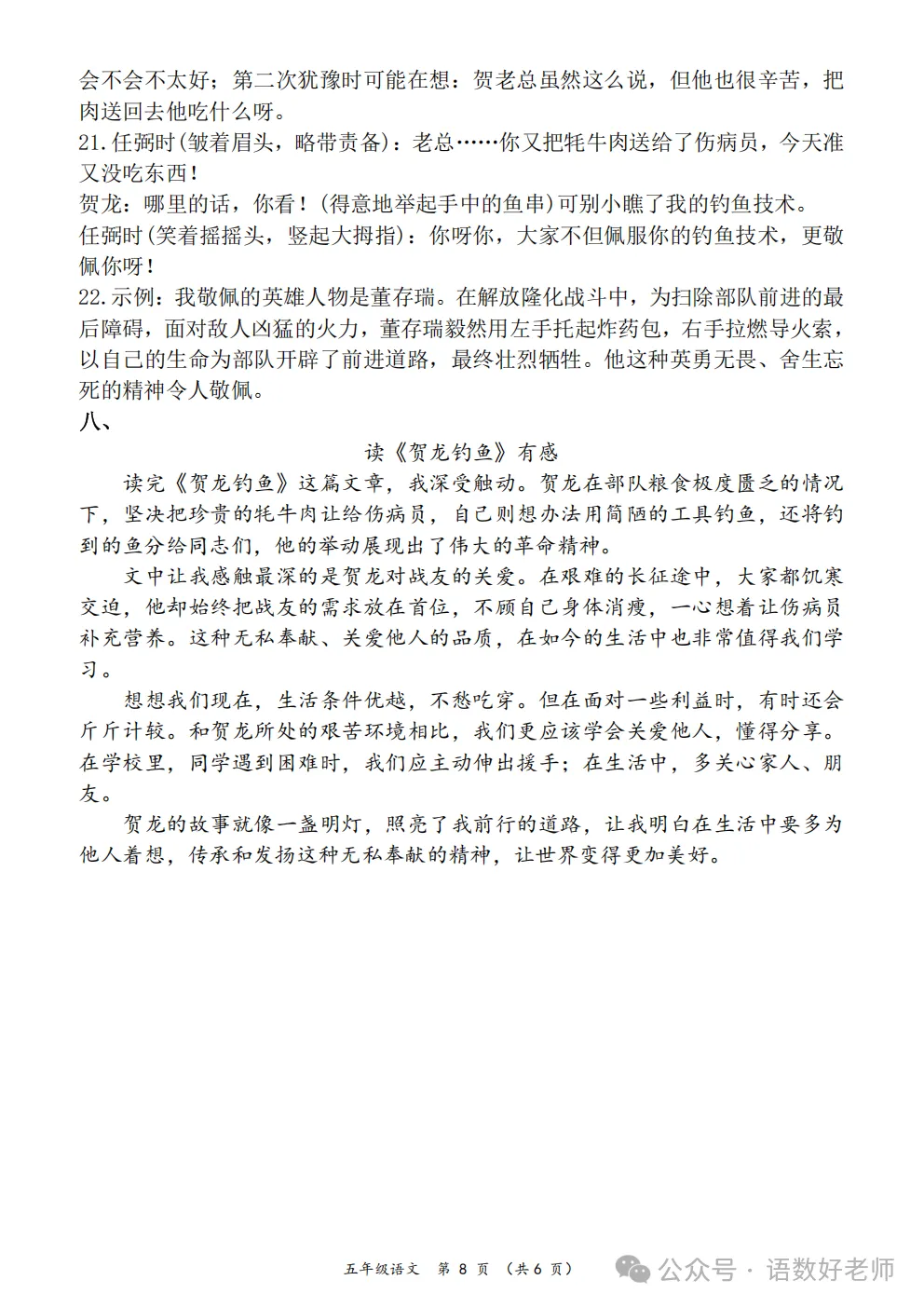 五年级下册语文《期中真题测试卷》附有答案可免费下载语数电子版试卷