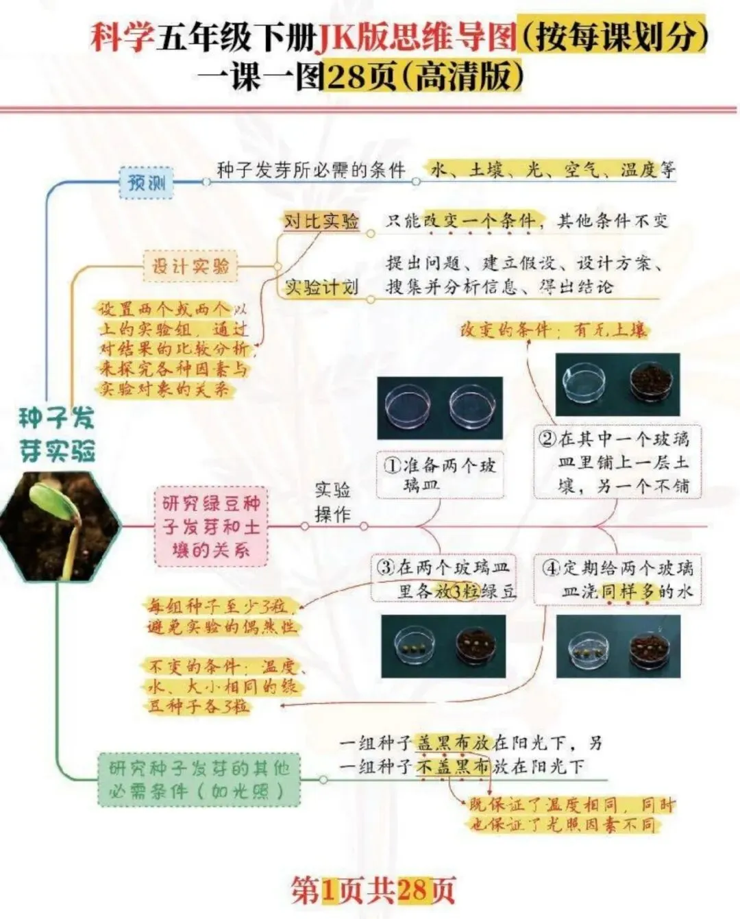 教科版科学五年级下册每课思维导图来啦!高清完结版共28张,一课一图,知识点梳理清晰、重点一目了然,电子版可打印可下载,需要的家长抓紧打印出来,让孩子练一练吧。