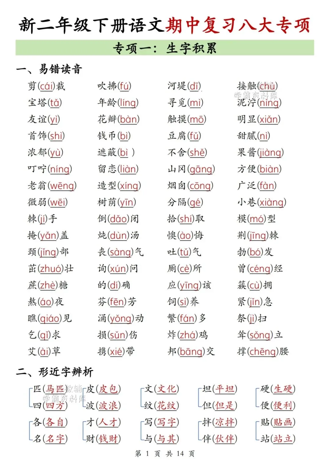 26年最新版《二年级语文下册期中复习八大专项合集》电子版可打印- 拷贝- 拷贝- 拷贝- 拷贝