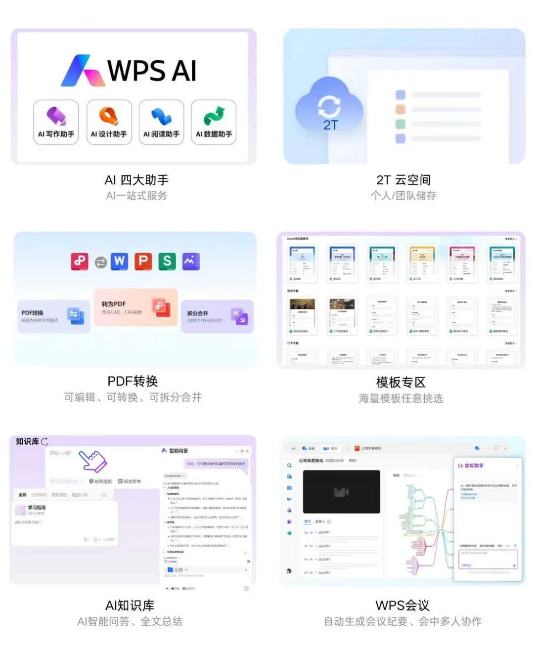多端接入:WPS客户端、WPS协作客户端,能自动整理会议记录,总结会议要点,沟通协作更顺畅。随时随地开展“云上头脑风暴”!
